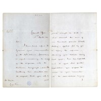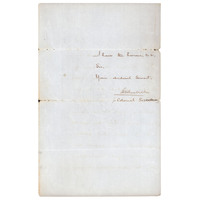 A letter from a representative of the Colonial Secretary in the Colonial Office, dated 6 April 1872, asking Wilhelm Bleek to account for how the £100 awarded to him by the colonial office for his Bushman researches has been expended and what future expenses may be incurred.