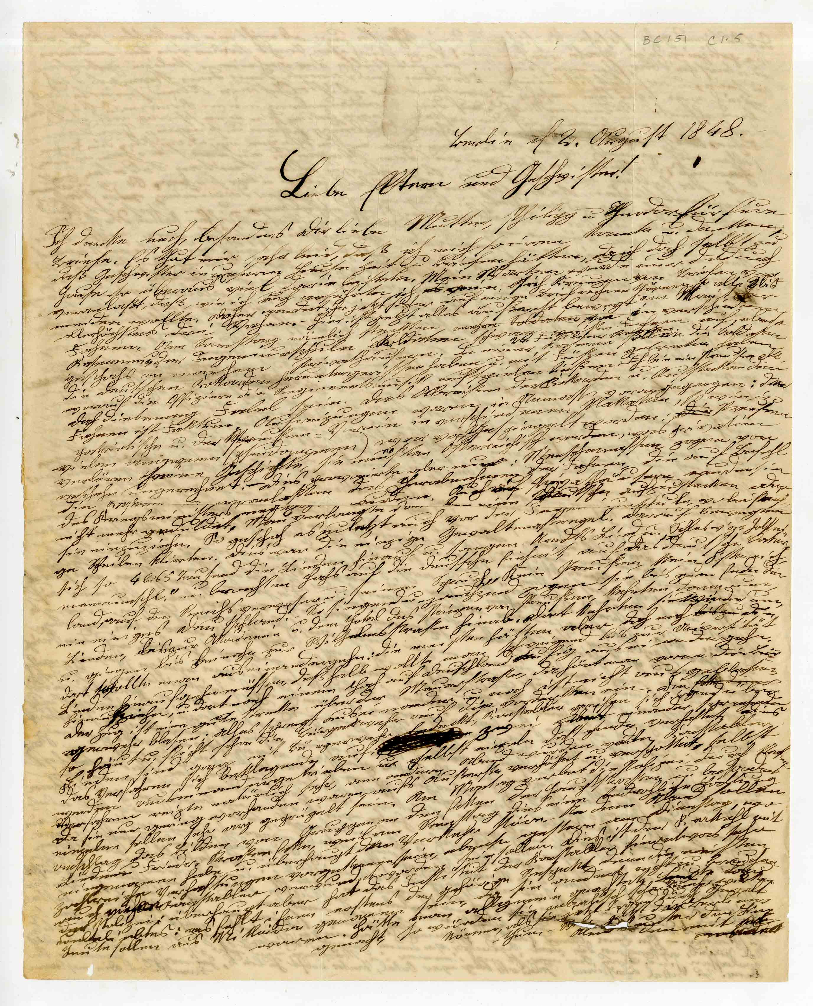 Wilhelm Bleek (in Berlin), Friedrich Bleek (Wilhelm Bleek's father), Auguste Charlotte Marianne Bleek (Wilhelm Bleek's mother), parents (Wilhelm Bleek's Friedrich Bleek and Auguste Bleek), letter (in German), siblings (Wilhelm Bleek's), 2 August 1848, family (Wilhelm Bleek's), mother (Wilhelm Bleek's Auguste Bleek), father (Wilhelm Bleek's Friedrich Bleek), brother (Wilhelm Bleek's), sister (Wilhelm Bleek's), personal history (Wilhelm Bleek's)