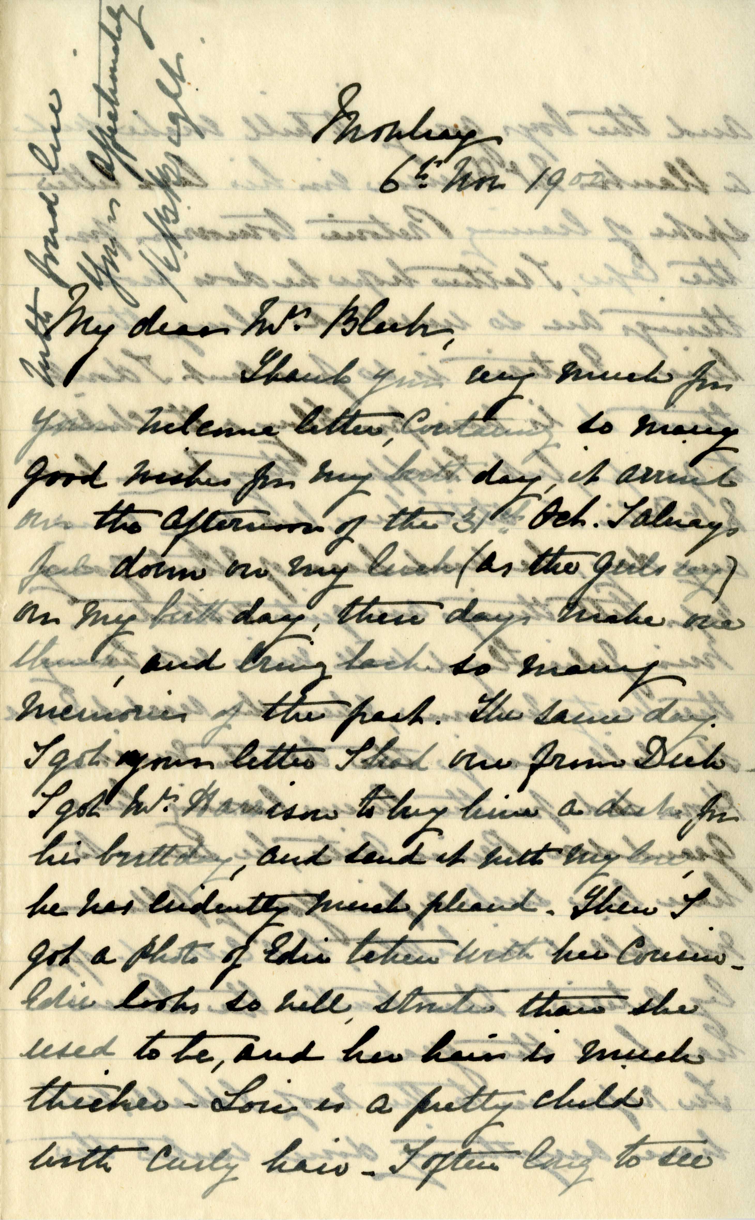 Letter from Katharine Bright to Jemima Bleek, from Mowbray in Cape Town, 6 November 1900.