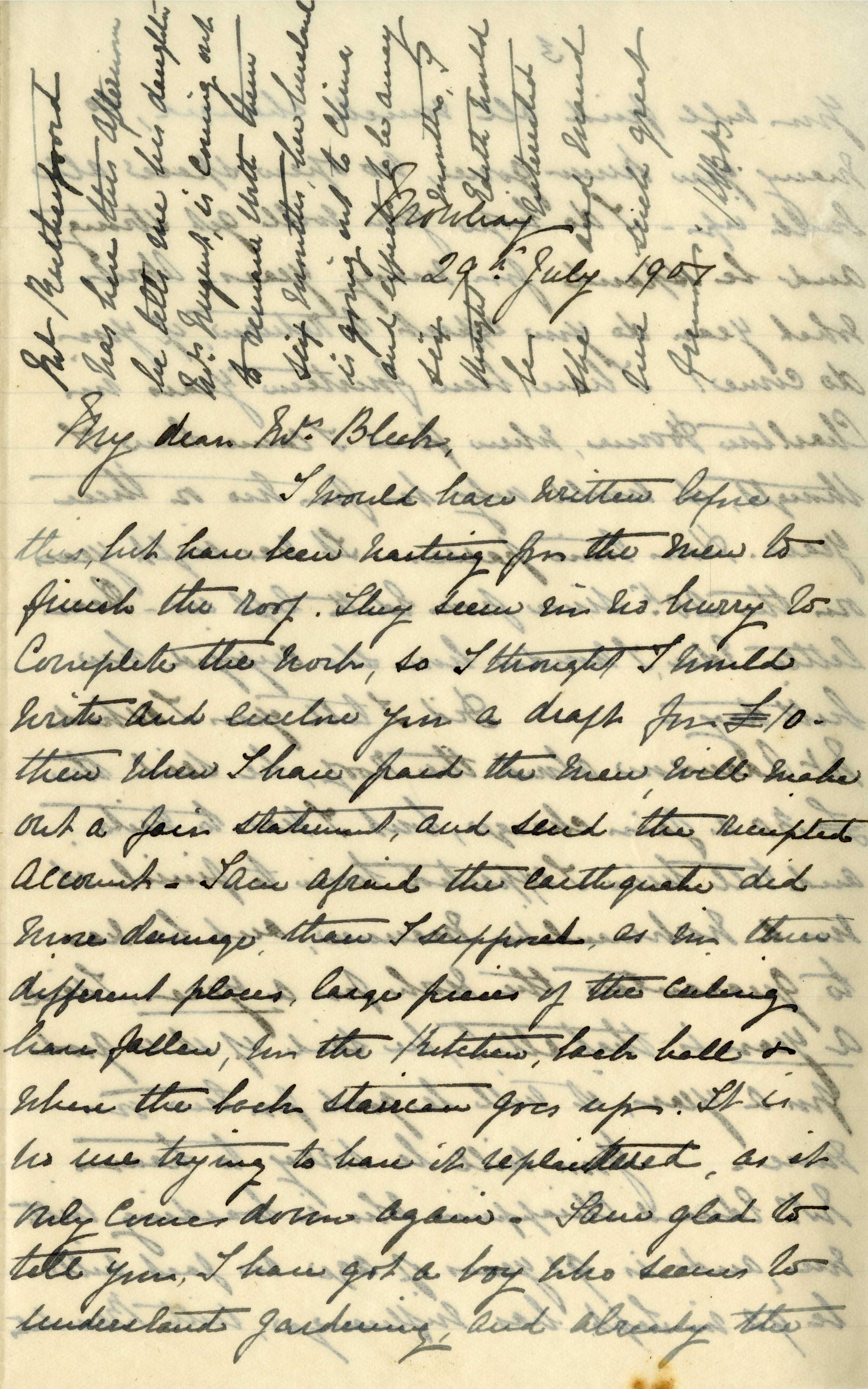 Letter from Katharine Bright to Jemima Bleek, from Mowbray in Cape Town, 29 July 1901.