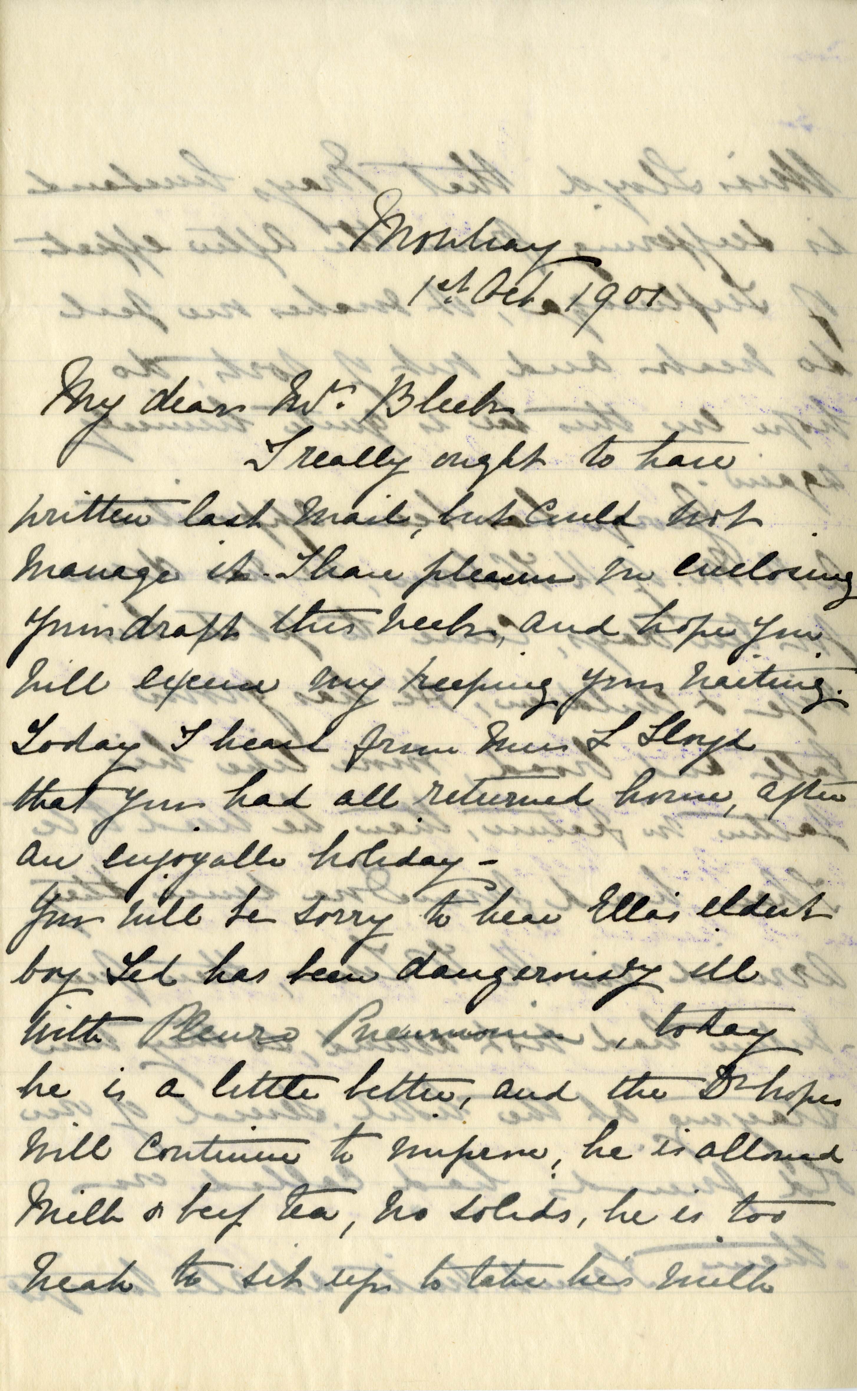 Letter from Katharine Bright to Jemima Bleek, from Mowbray in Cape Town, 1 October 1901.