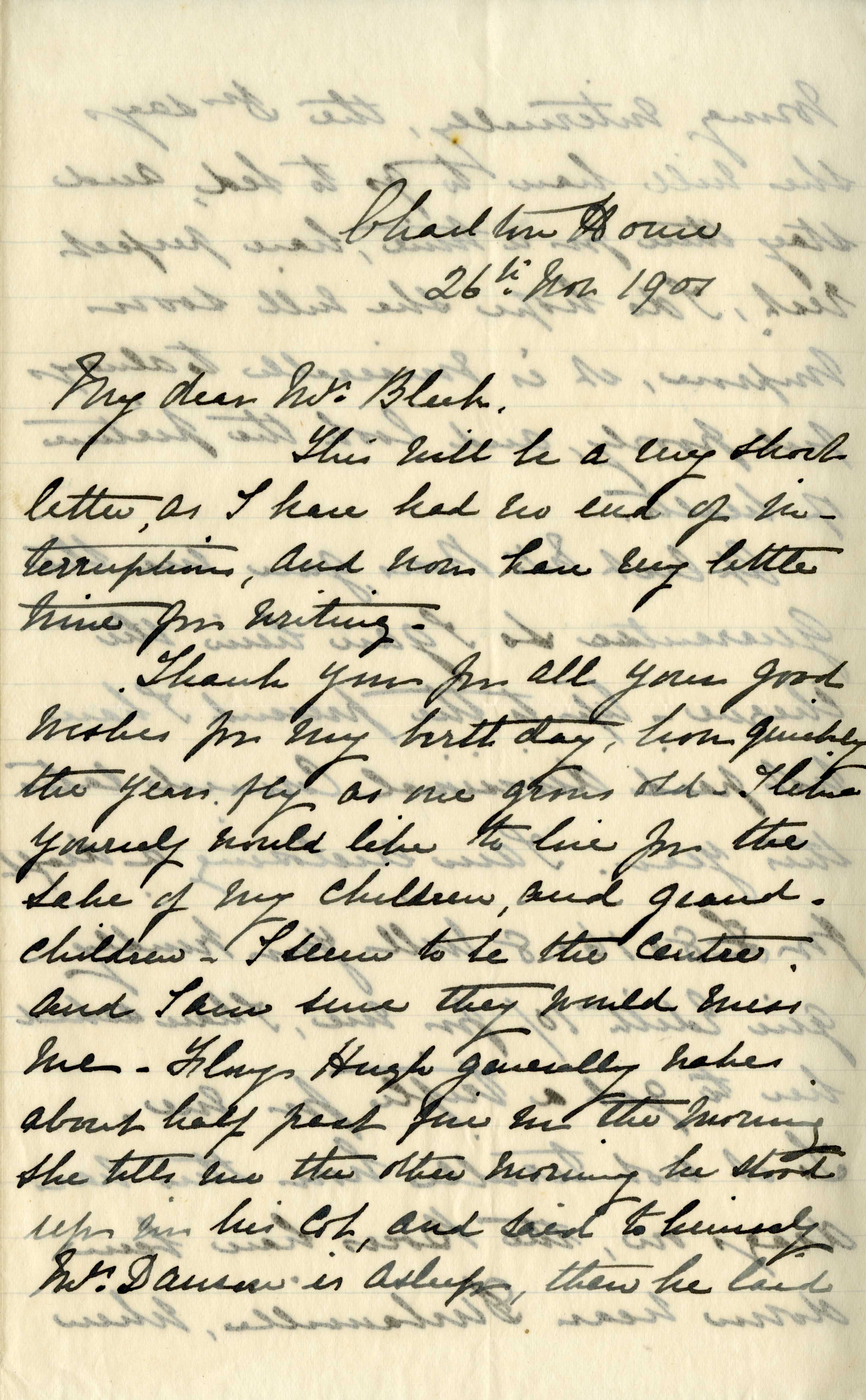 Letter from Katharine Bright to Jemima Bleek, from Mowbray in Cape Town, 26 November 1901.