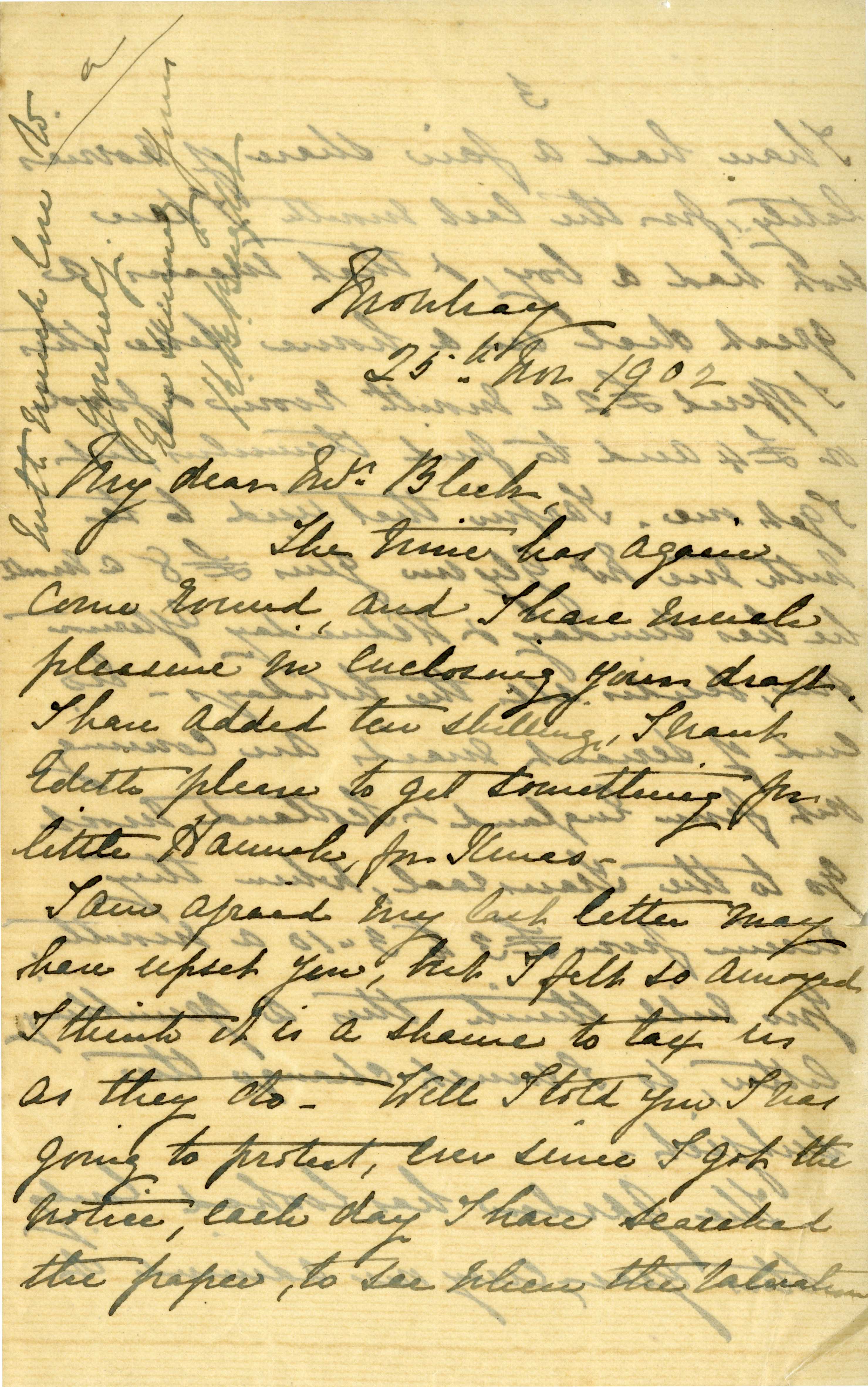 Letter from Katharine Bright to Jemima Bleek, from Mowbray in Cape Town, 25 November 1902.