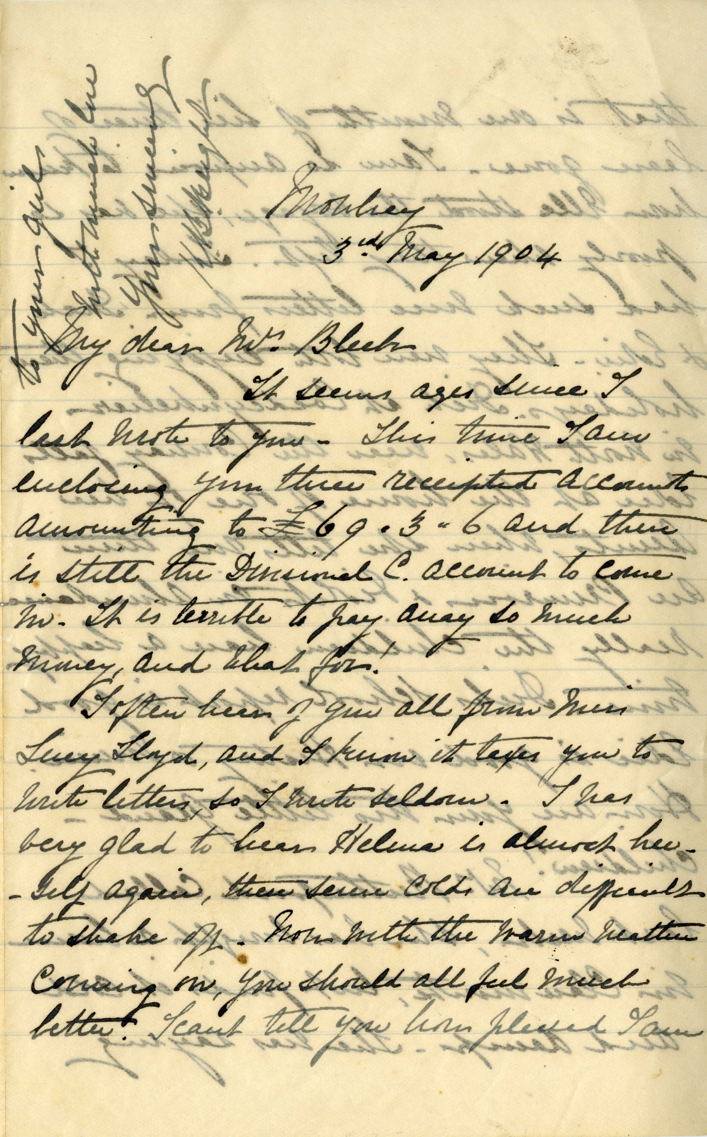 Letter from Katharine Bright to Jemima Bleek, from Mowbray in Cape Town, 3 May 1904.