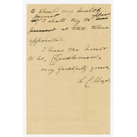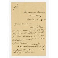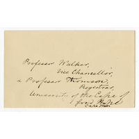 Envelope containing Lucy Lloyd's response [or copy?] to the official announcement from the Council of the University of the Cape of Good Hope regarding its decision to offer her the Honorary Degree of Doctor of Literature; also its invitation to attend the graduation ceremony. Lloyd has addressed the envelope to the Vice Chancellor, Professor Walker, and the Registrar, Professor Thompson.