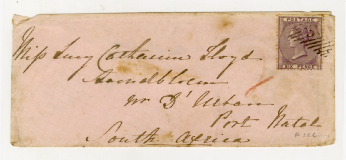 2 October 1862, envelope, London postmark, Miss Lucy Catherine Lloyd, Natal address