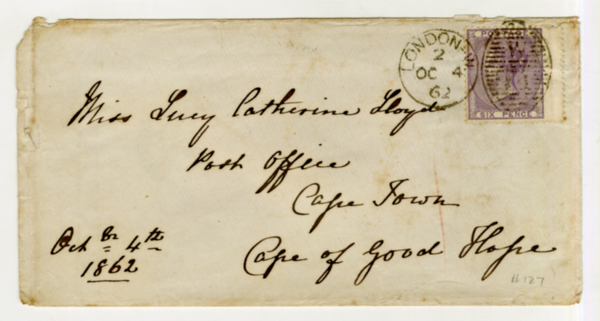 4 October 1862, Cape Town, envelope, London postmark, Miss Lucy Catherine Lloyd