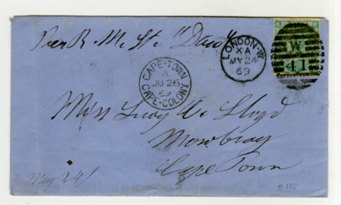 24 May 1869, envelope, London postmark, Lucy C Lloyd, Mowbray