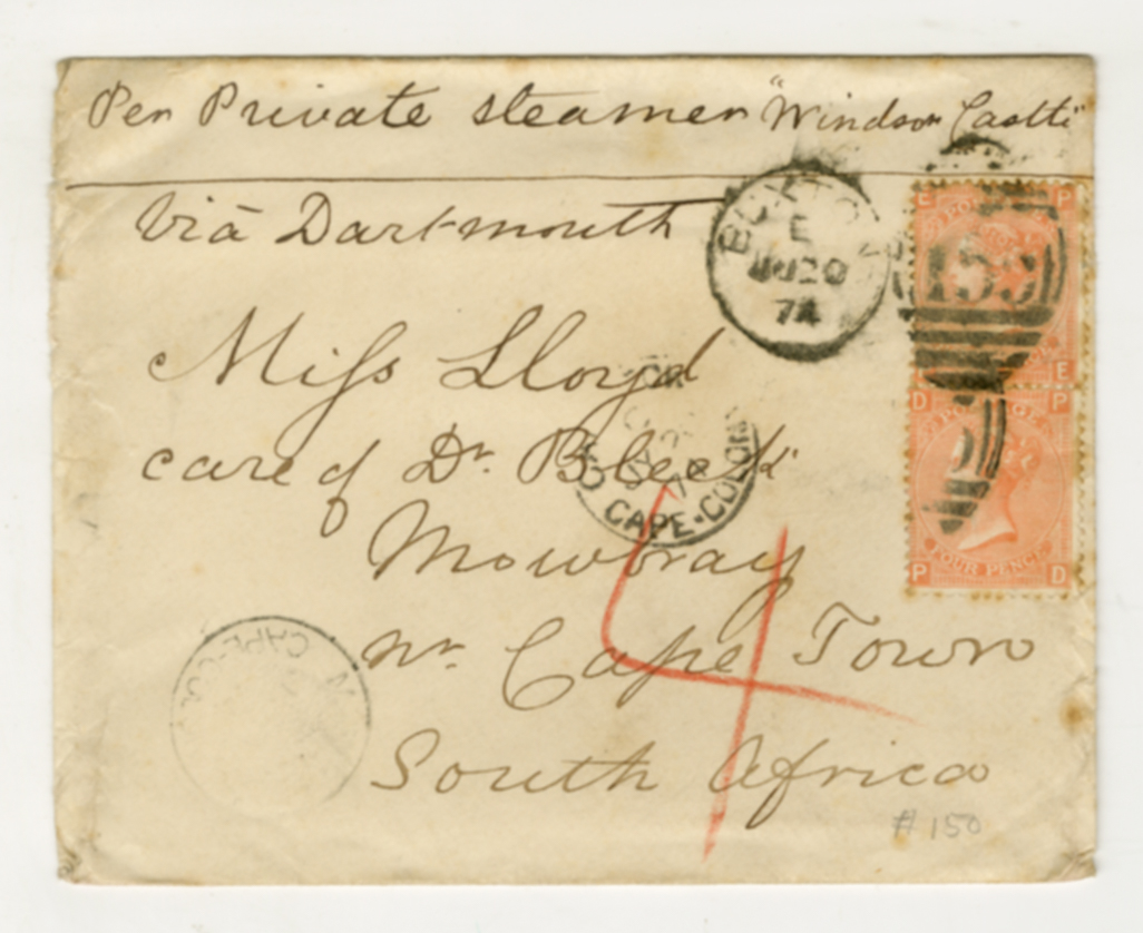 20 June 1874, c/o Dr Bleek, envelope, Fanny/Frances Lloyd, Lucy Lloyd, Mowbray, postmark Buxton, Wilhelm Bleek