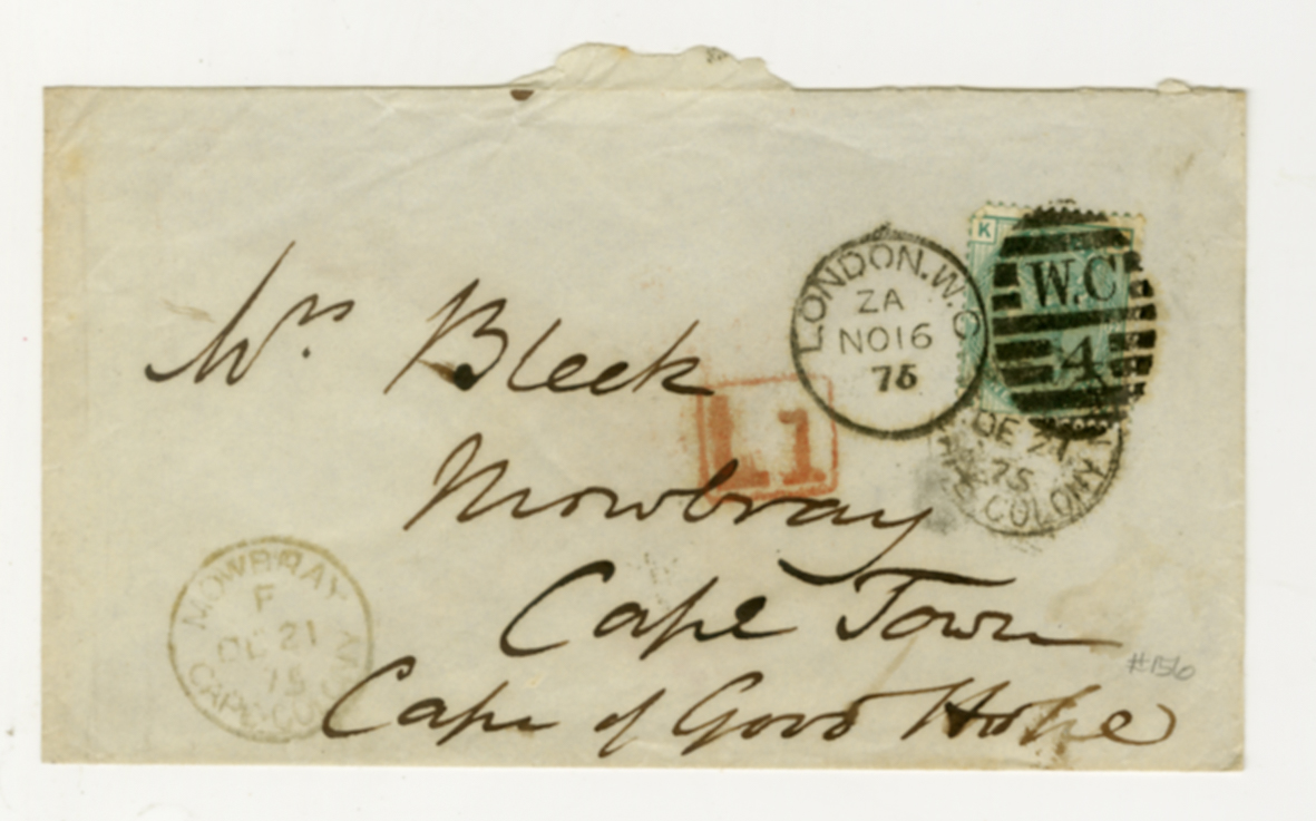 16 November 1875, envelope, Jemima Bleek, London postmark, Mowbray, Mrs Bleek