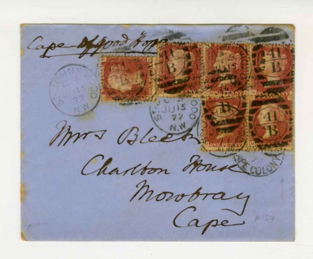 15 June 1877, envelope, Jemima Bleek, motto, Mowbray, Mrs Bleek