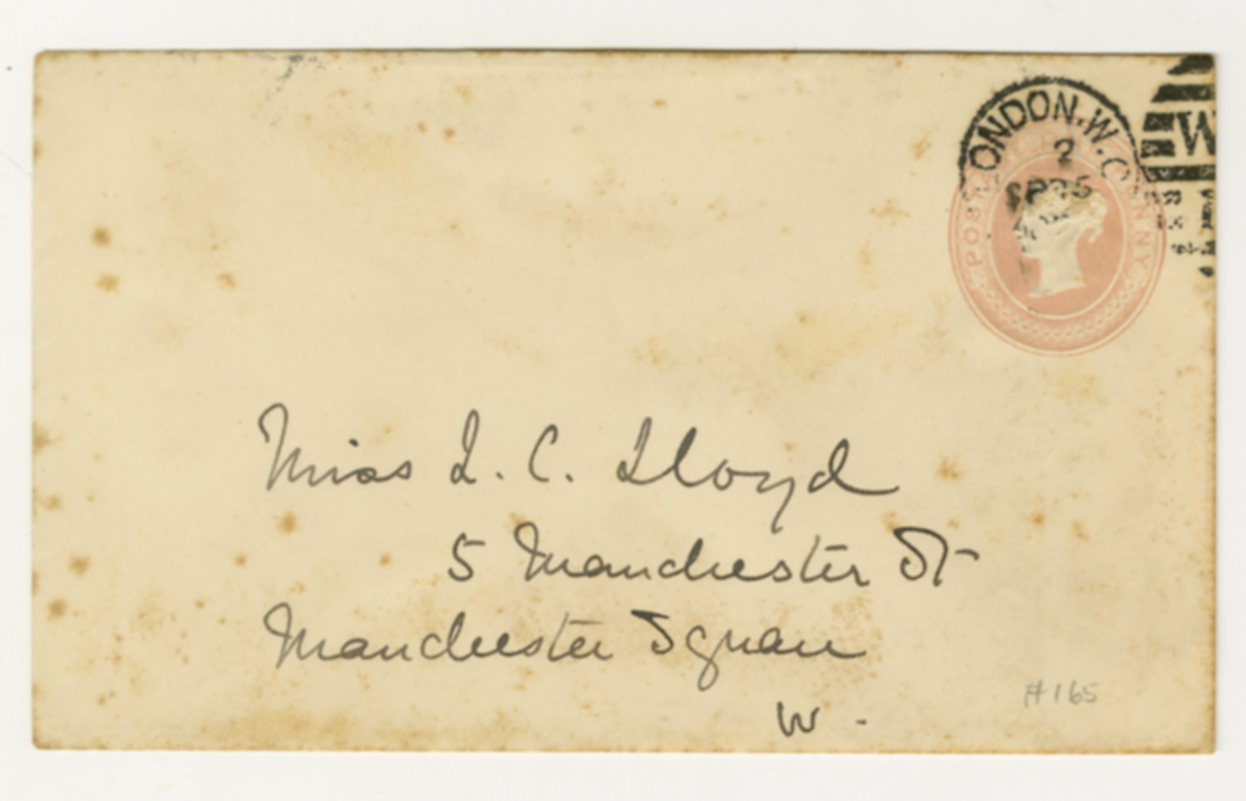 25 September 1889, envelope, London address and postmark, Lucy Lloyd, Miss LC Lloyd