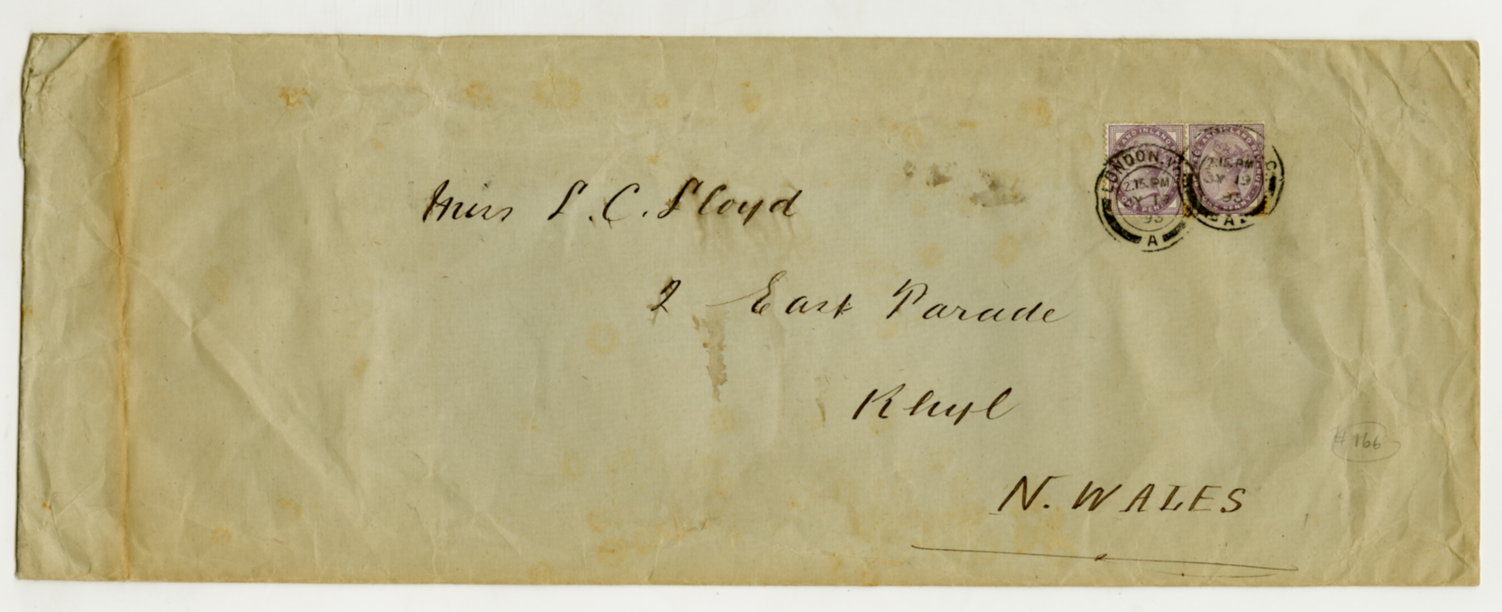 19 July 1893, 1773, Ann Lloyd, annotation, Bell Lloyd, Cambridge, Cynric Lloyd, Edward Pryce Lloyd, Elizabeth Lloyd, envelope, Frances Lloyd, Gryffydd Lloyd, list of names, list of Lloyds, Llewelyn Lloyd, Lloyd family names, London postmark, Lucy Lloyd, postmark, Wales address, wax seal, William Henry Lloyd