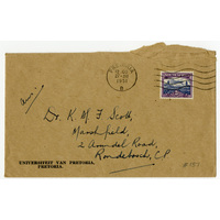Envelope of letter from Professor JA Engelbrecht to Dr KMF Scott; the letter is dated December 26 1951.