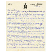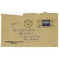 Envelope of letter from Professor JA Engelbrecht to Dr KMF Scott; the letter is dated 31 August 1952. The "University van Pretoria" envelope is annotated "Ans".