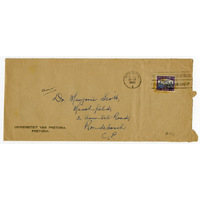 Envelope of letter from Professor JA Engelbrecht to Dr KMF Scott; the letter is dated 24 September 1952. The "University van Pretoria" envelope is annotated "Ans".