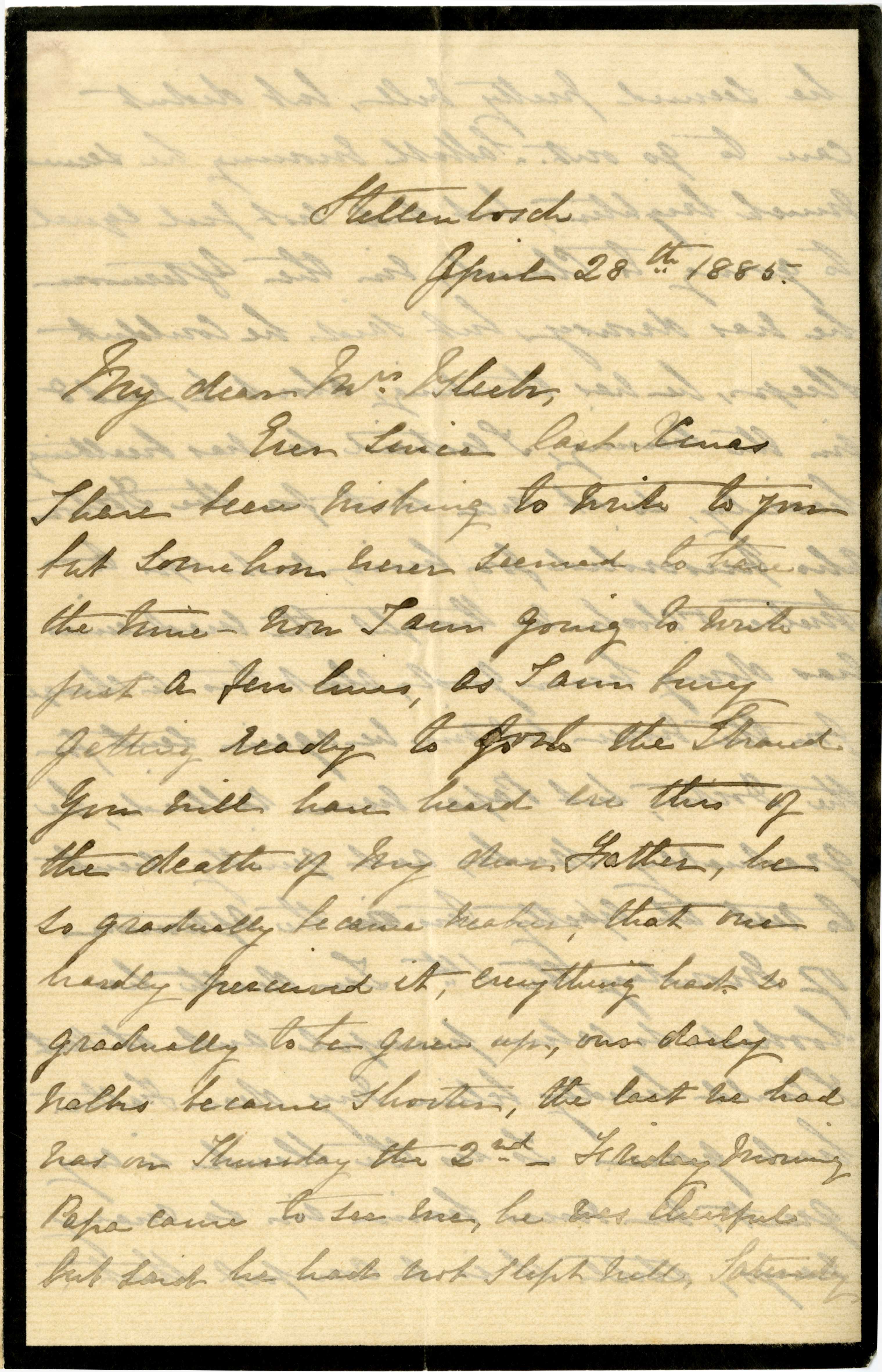 Letter from Katharine Bright to Jemima Bleek, from Stellenbosch, 28 April 1885.