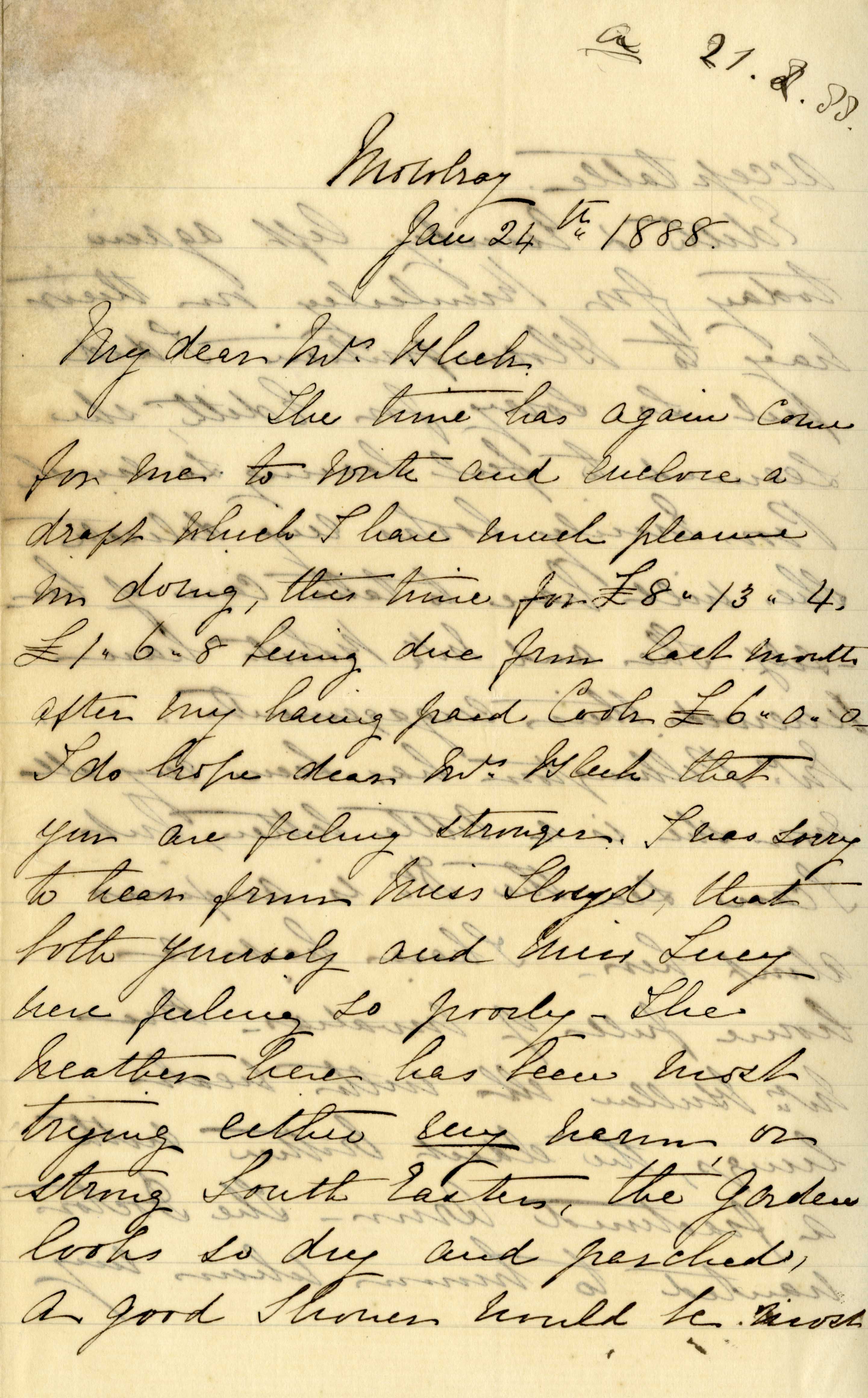 Letter from Katharine Bright to Jemima Bleek, from Charlton House, Mowbray, in Cape Town, 24 January 1888.