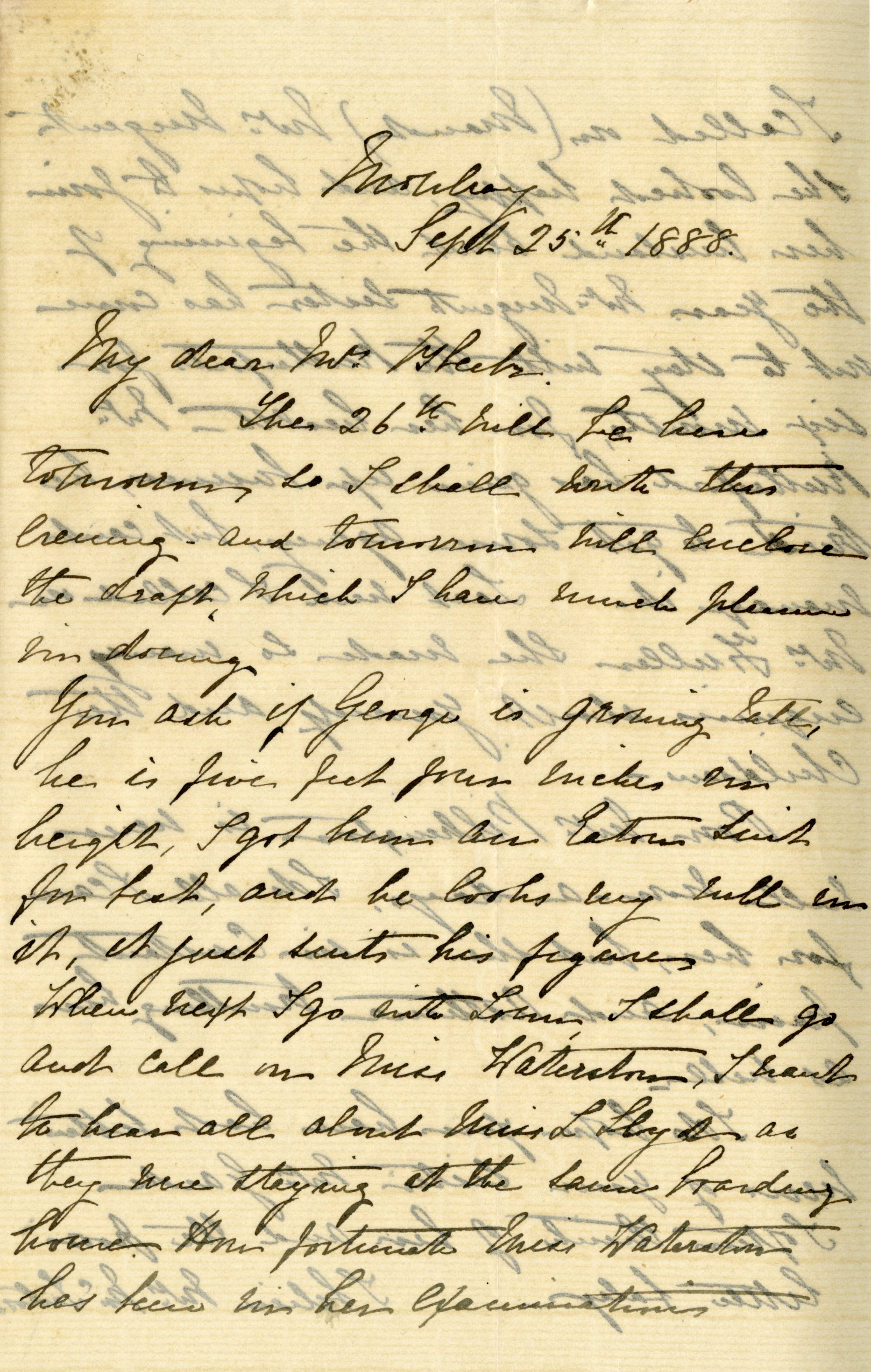 Letter from Katharine Bright to Jemima Bleek, from Charlton House, Mowbray, in Cape Town, 25 September 1888.
