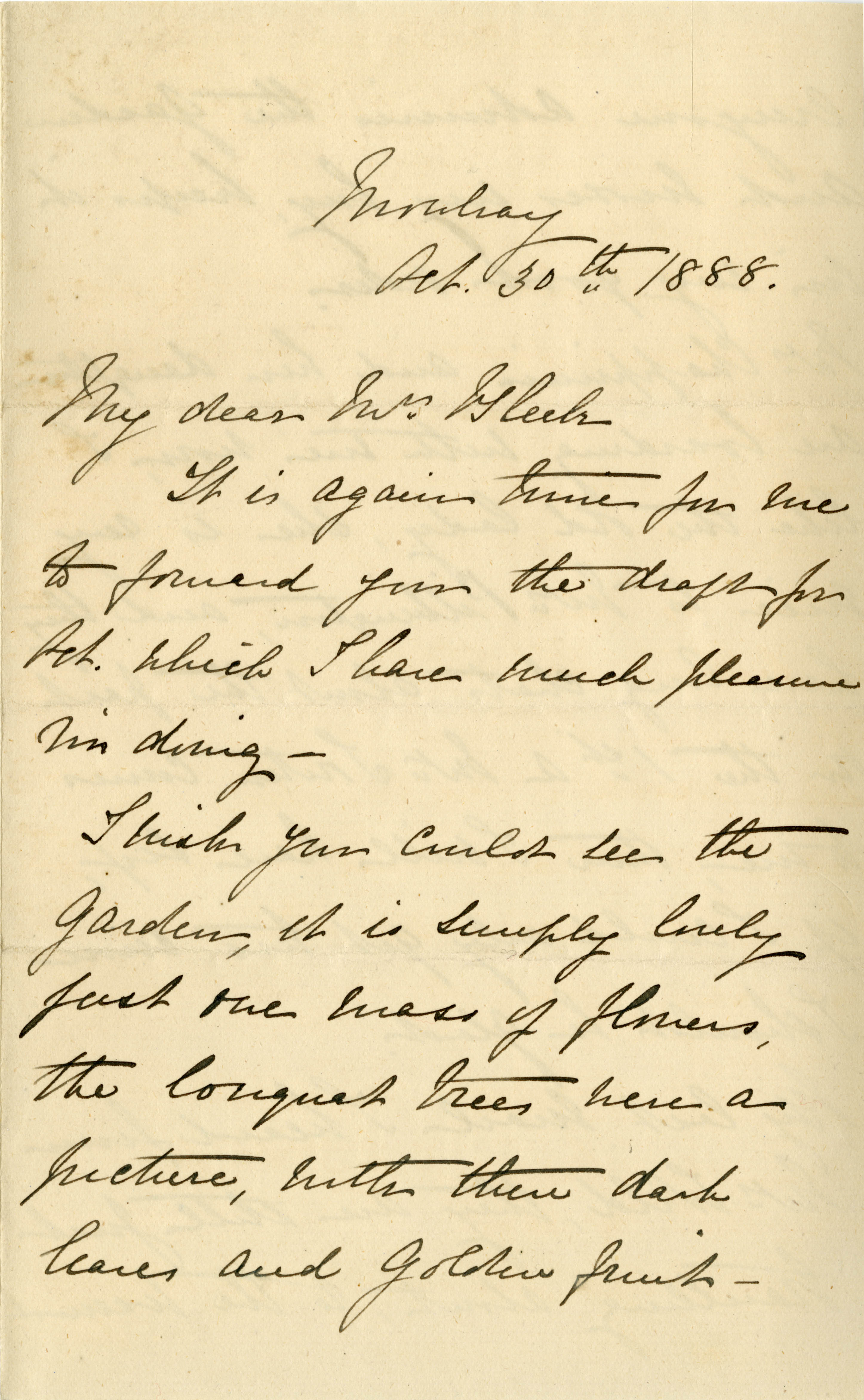 Letter from Katharine Bright to Jemima Bleek, from Charlton House, Mowbray, in Cape Town, 30 December 1888.