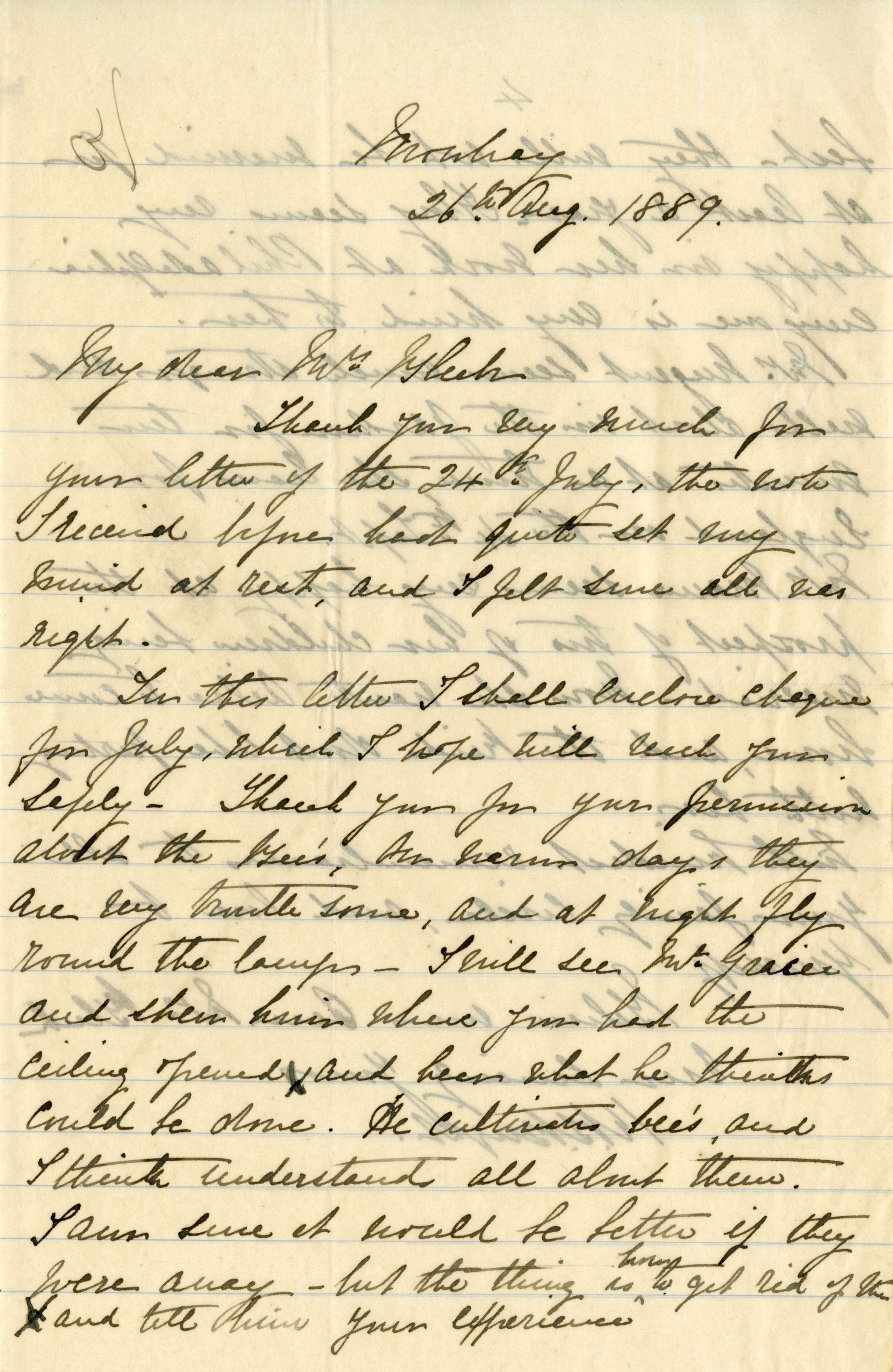 Letter from Katharine Bright to Jemima Bleek, from Charlton House, Mowbray, in Cape Town, 26 July 1889.