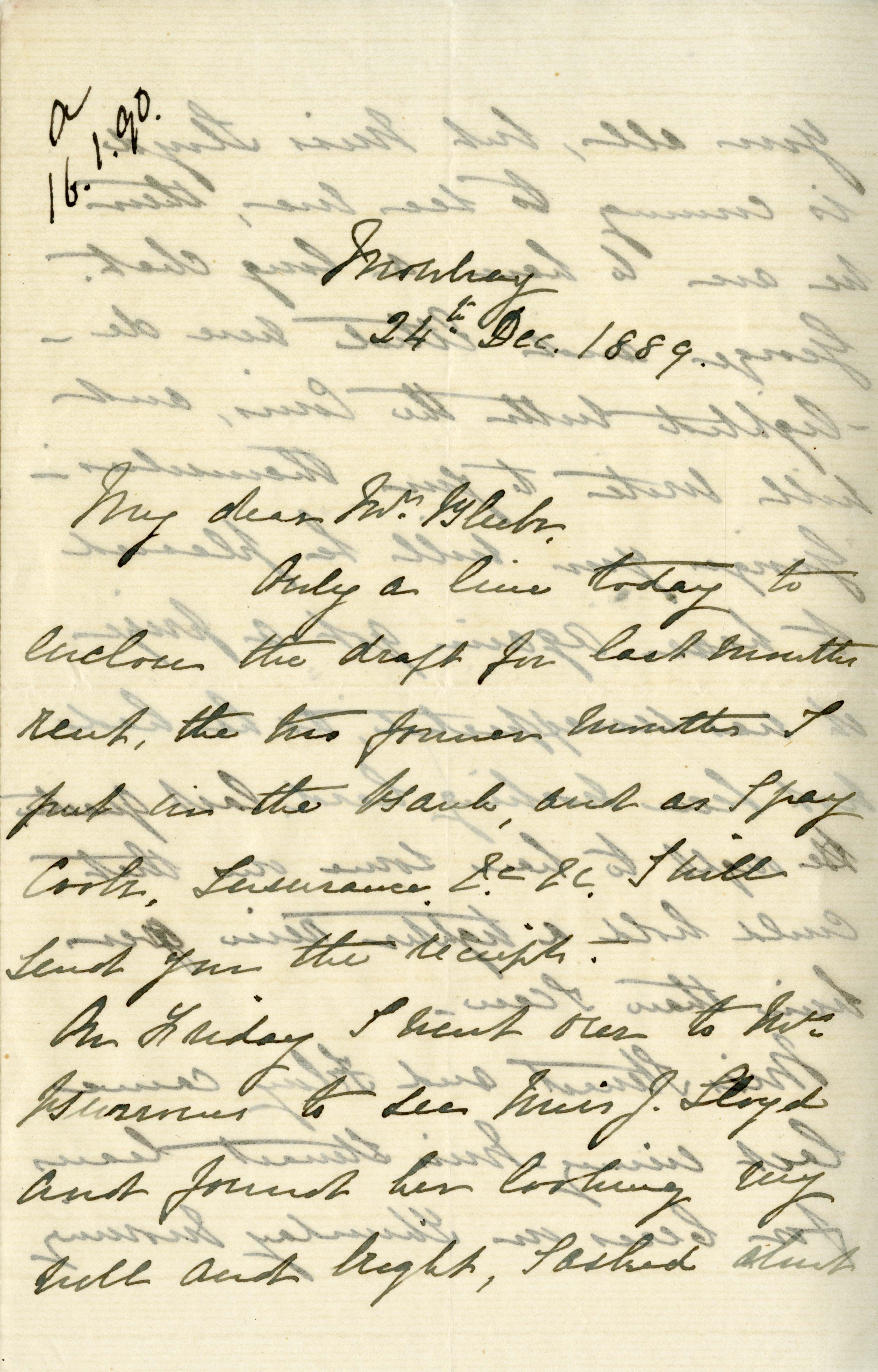 Letter from Katharine Bright to Jemima Bleek, from Mowbray in Cape Town, 24 December 1889.