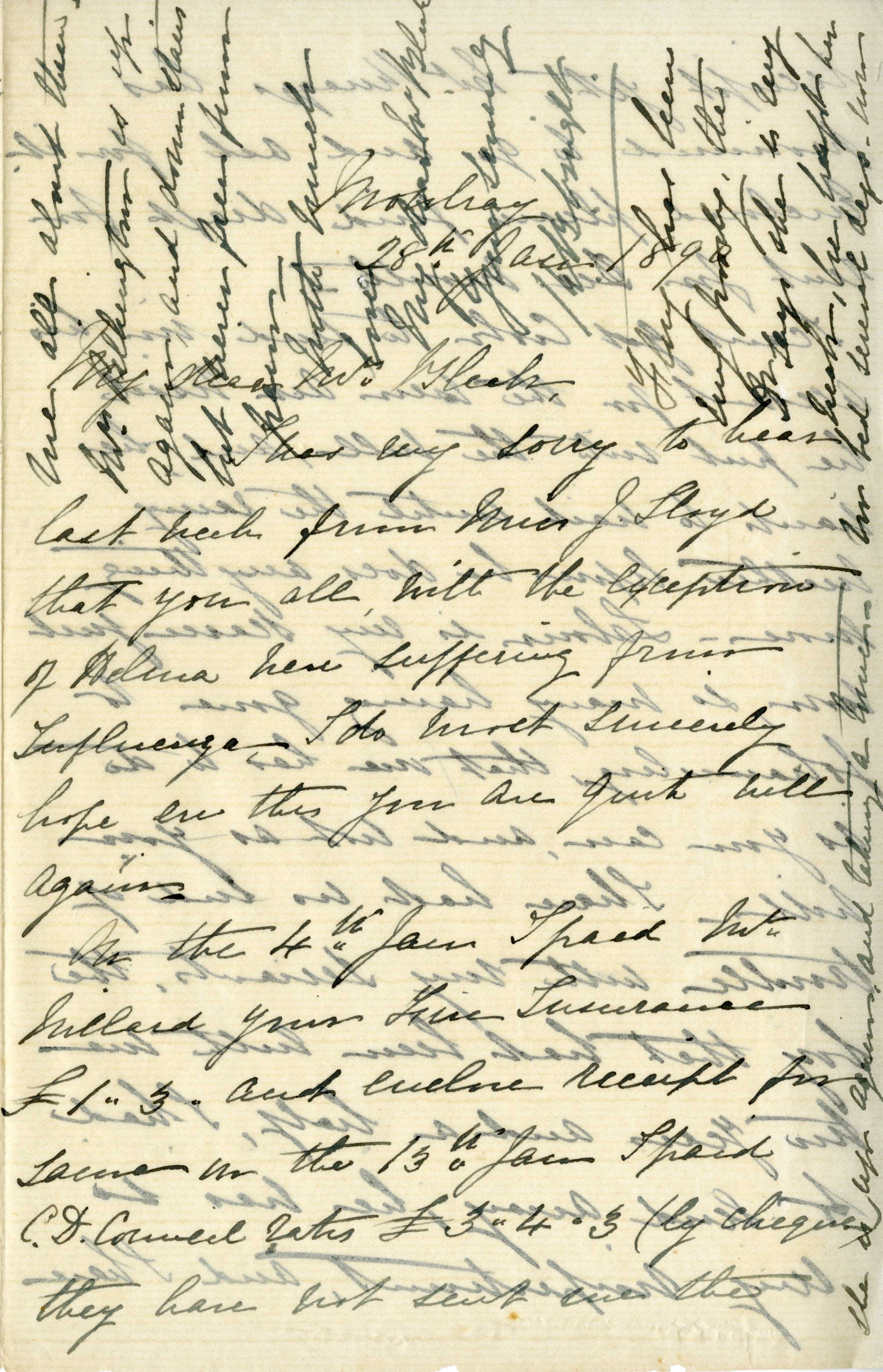 Letter from Katharine Bright to Jemima Bleek, from Mowbray in Cape Town, 28 January 1890.