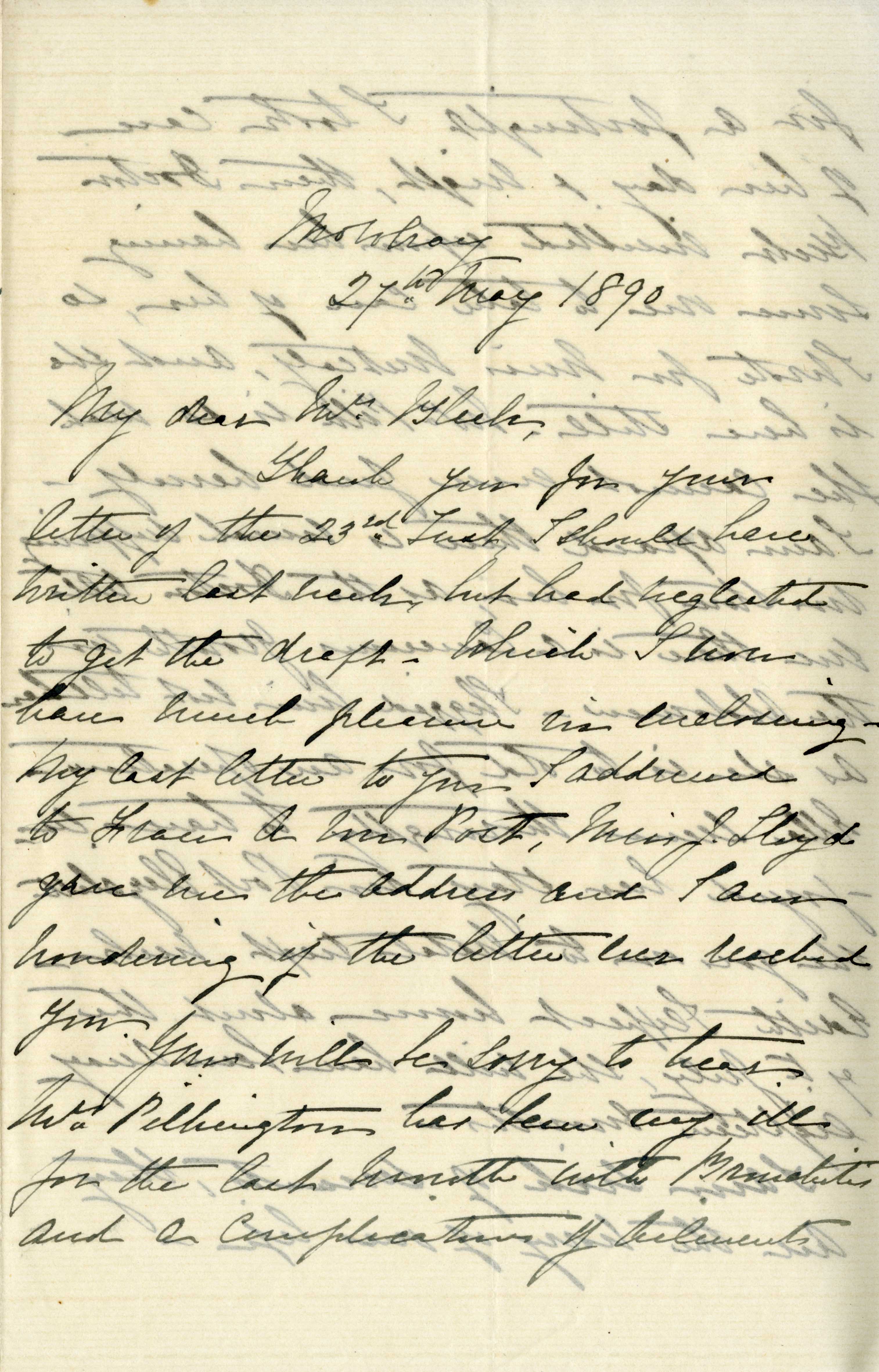 1. The Brights rented Charlton House from Jemima while she and her family lived in Germany. The Brights moved in on 6 June 1887 and Jemima returned in 1904. 2. The letter description is taken from the Bleek-Lloyd Scott Family Archive Catalog 2007. [See Resources on this website]