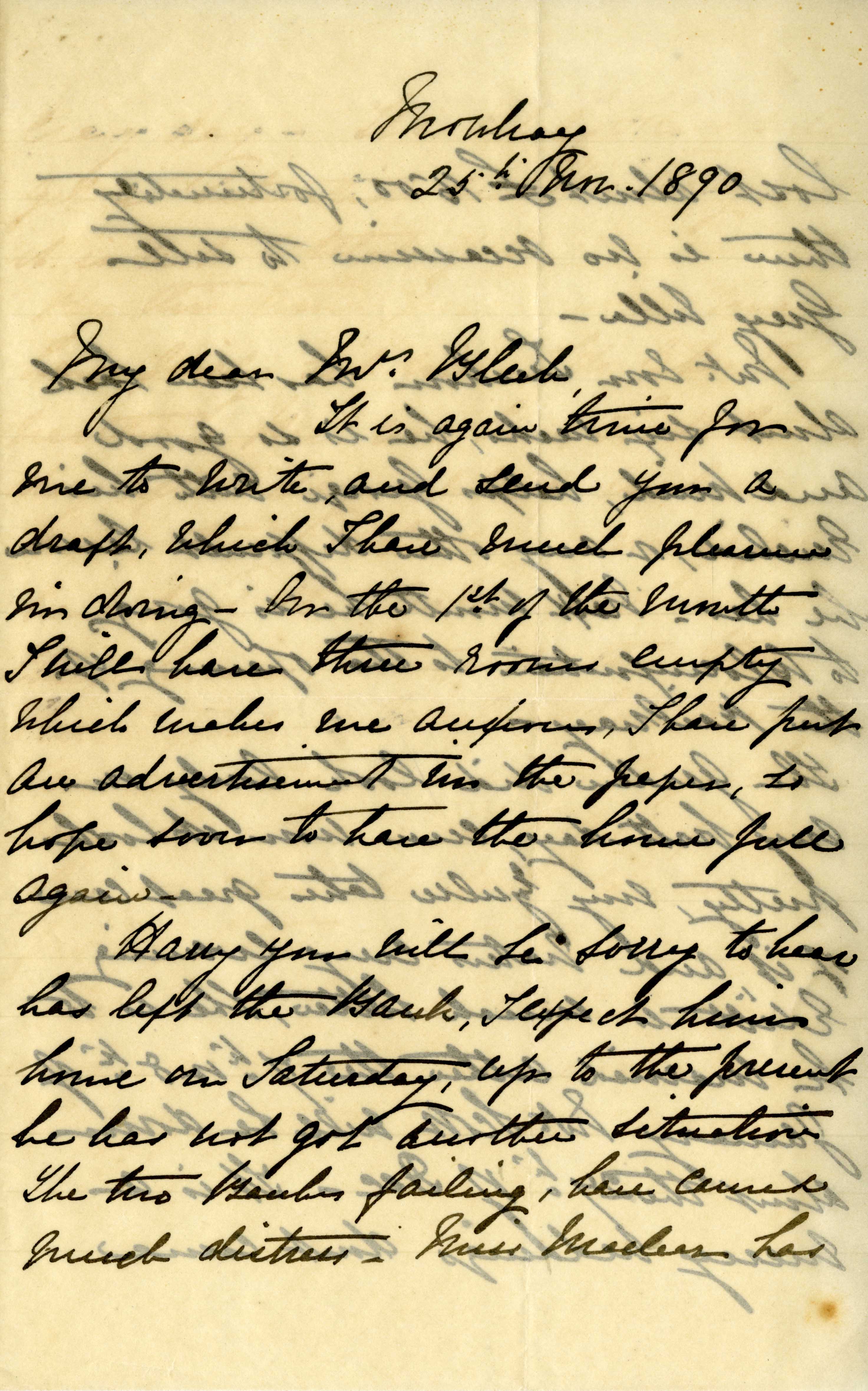 Letter from Katharine Bright to Jemima Bleek, from Mowbray in Cape Town, 25 November 1890.