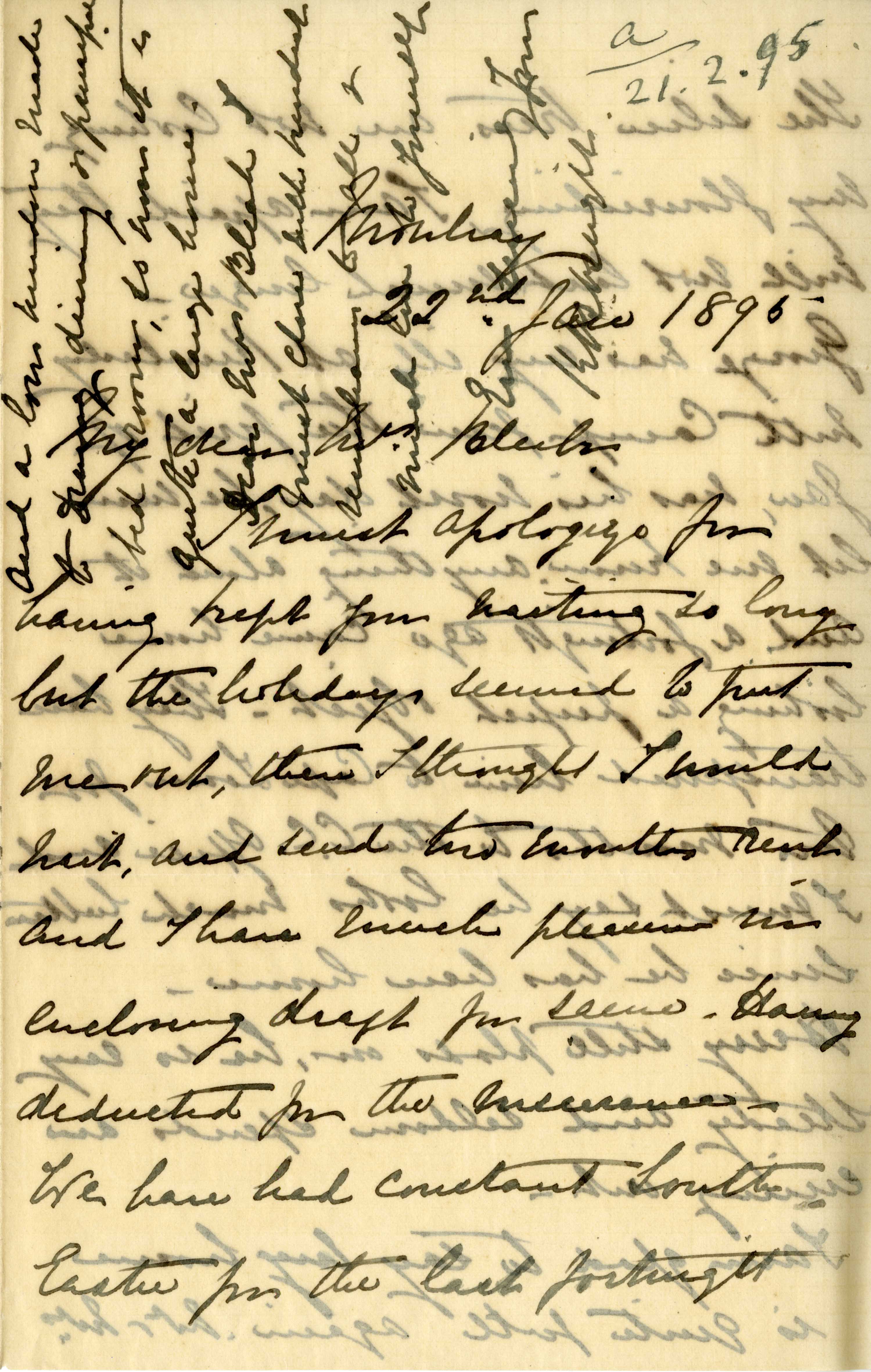 Letter from Katharine Bright to Jemima Bleek, from Mowbray in Cape Town, 22 January 1895.