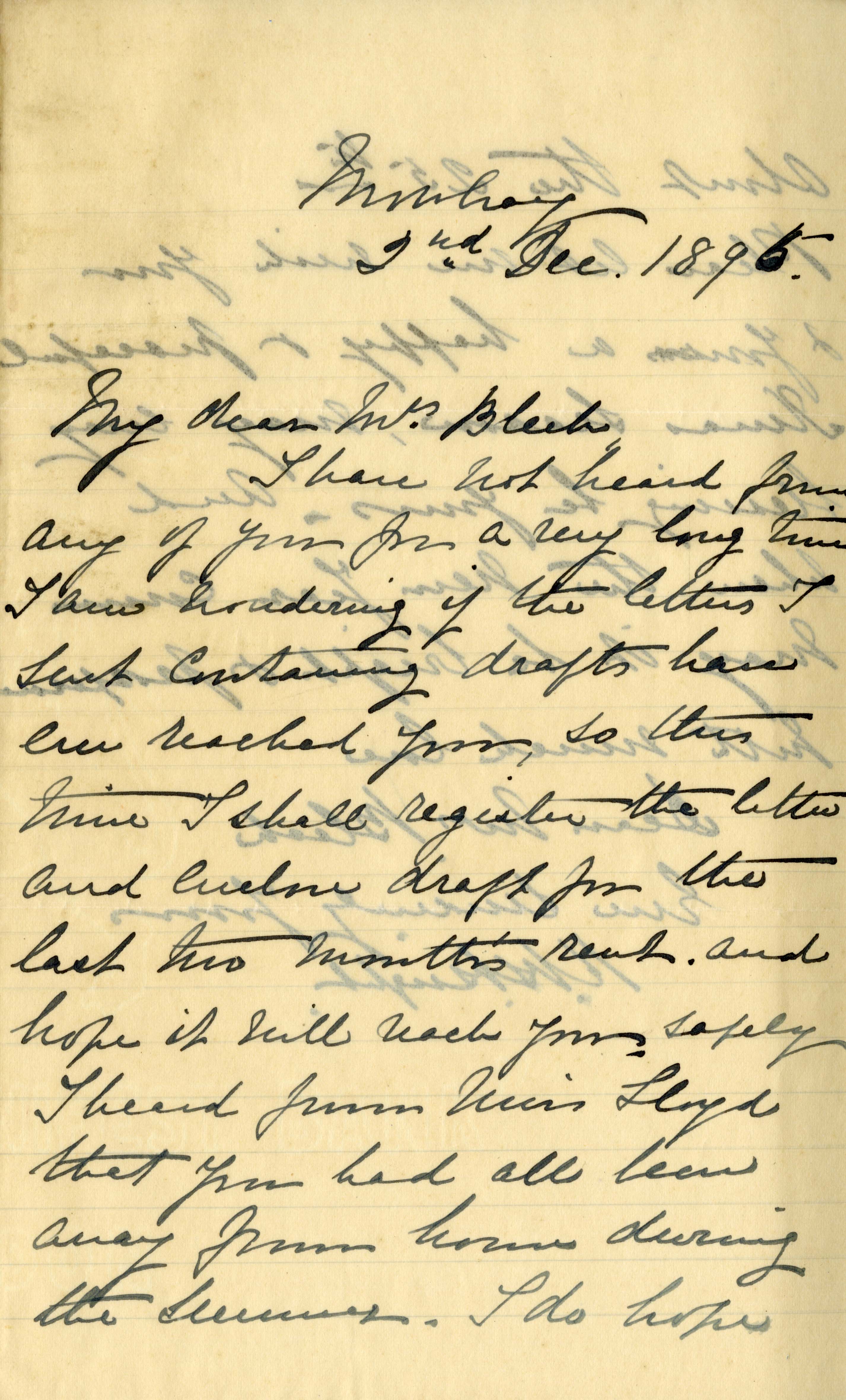 Letter from Katharine Bright to Jemima Bleek, from Mowbray in Cape Town, 2 December 1895.