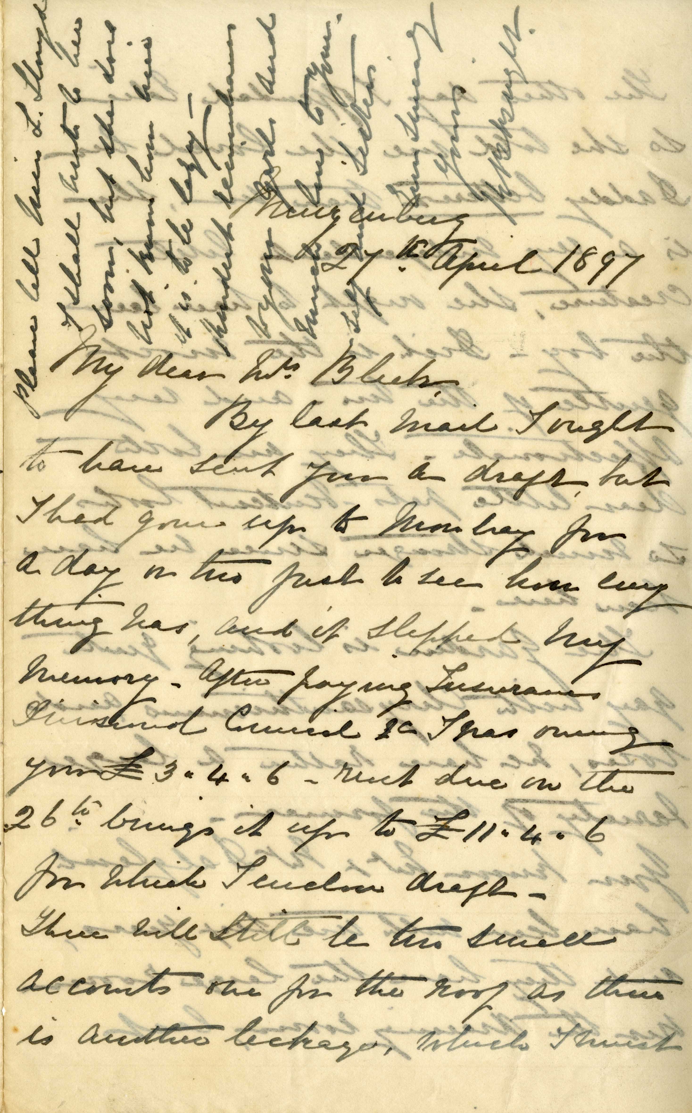 Letter from Katharine Bright to Jemima Bleek, from Mowbray in Cape Town, 27 April 1897.