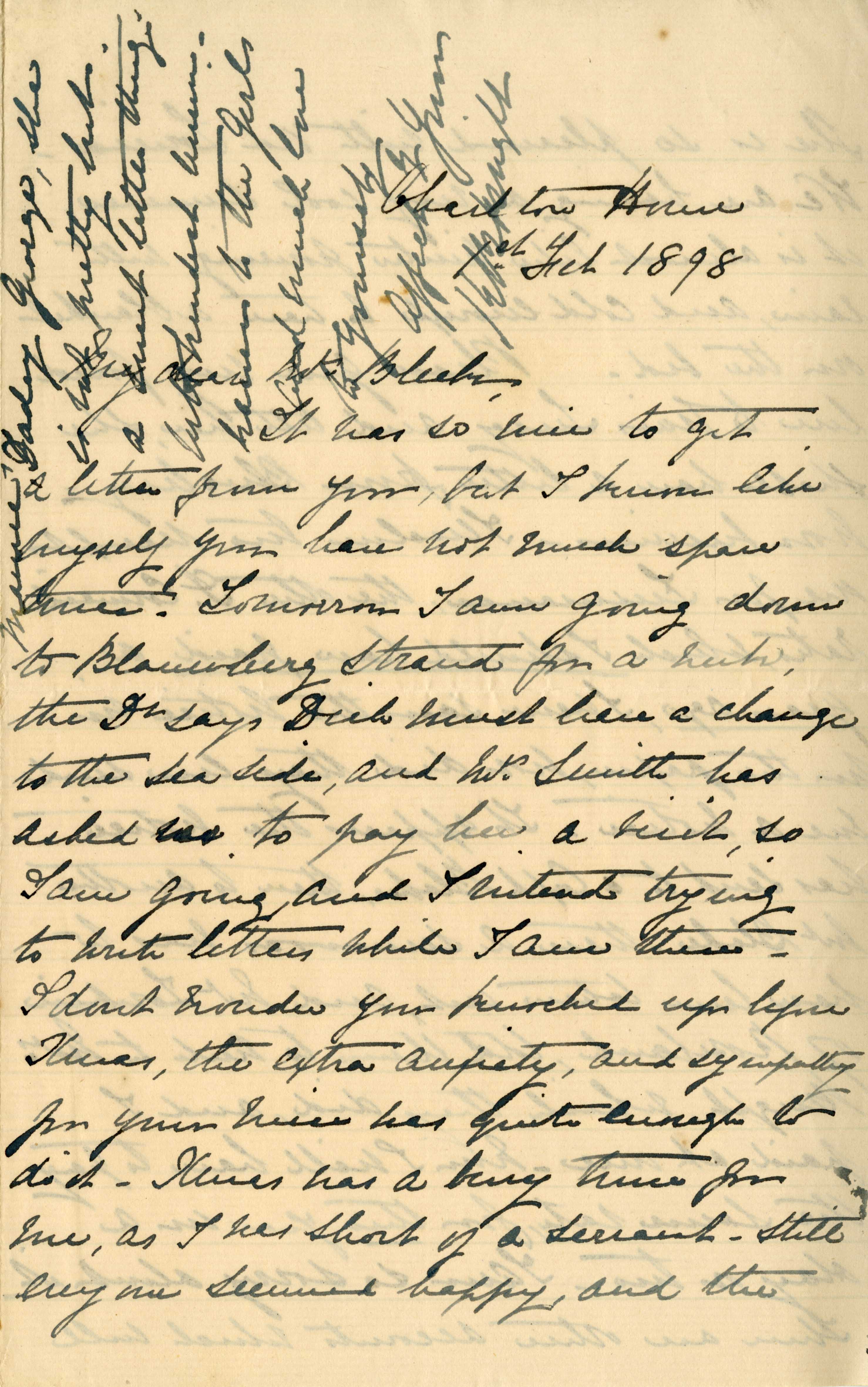Letter from Katharine Bright to Jemima Bleek, from Mowbray in Cape Town, 1 February 1898.