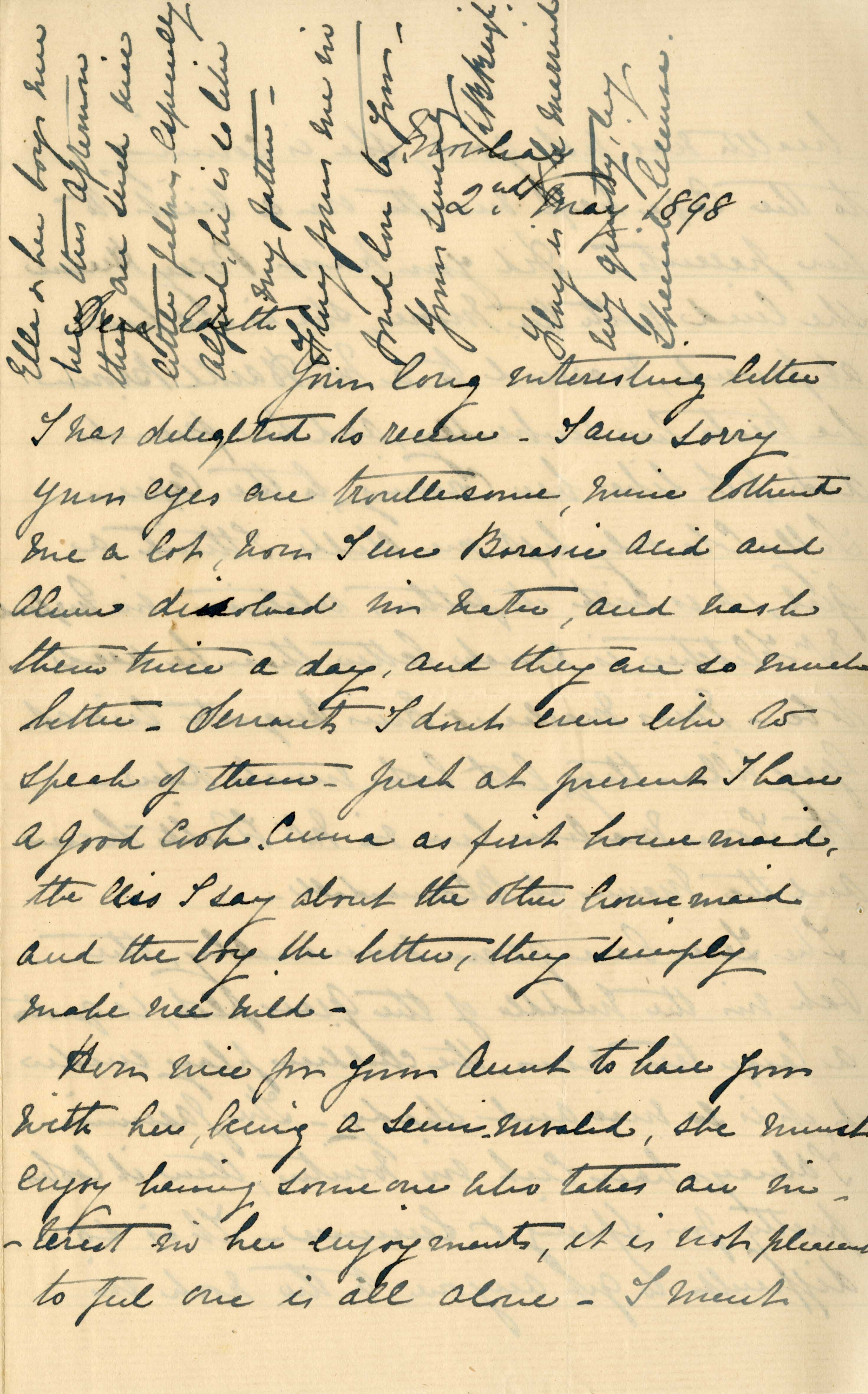 Letter from Katharine Bright to Jemima Bleek, from Mowbray in Cape Town, 2 May 1898.