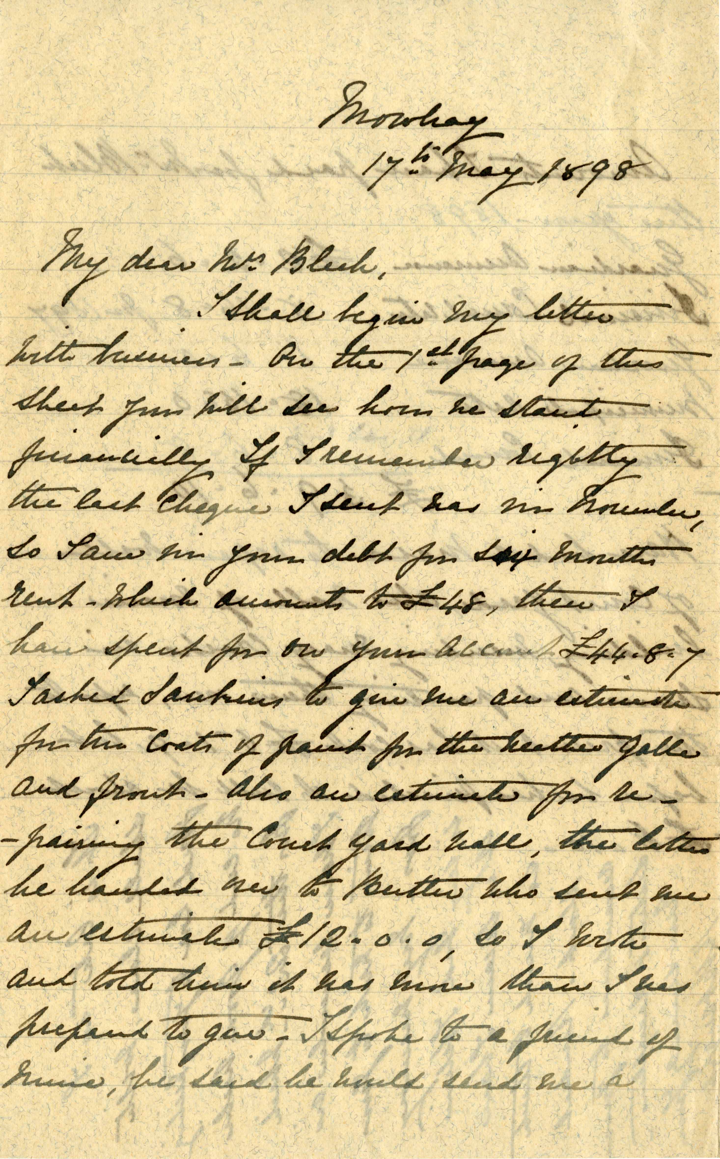 Letter from Katharine Bright to Jemima Bleek, from Mowbray in Cape Town, 17 May 1898.