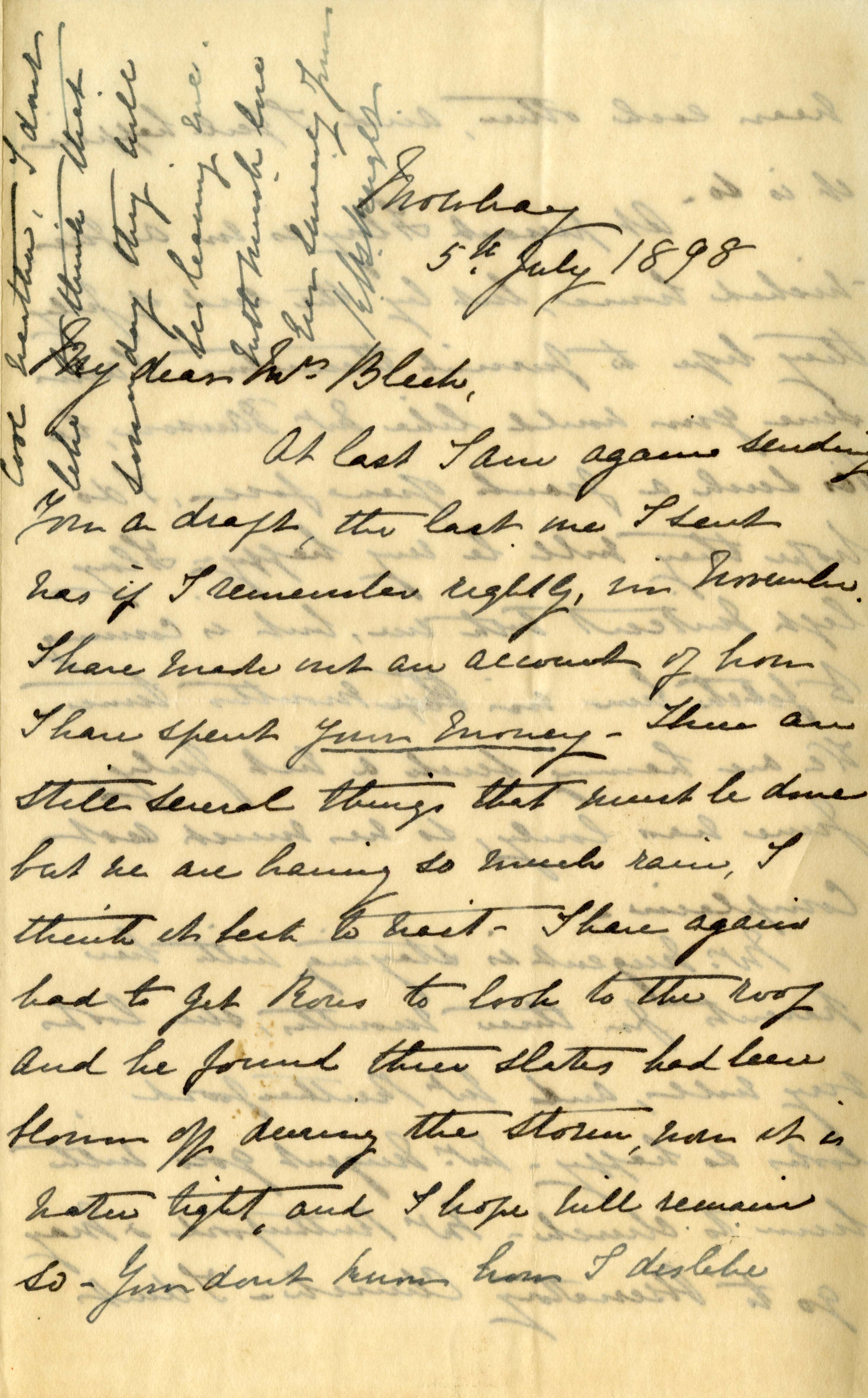 Letter from Katharine Bright to Jemima Bleek, from Mowbray in Cape Town, 5 July 1898.