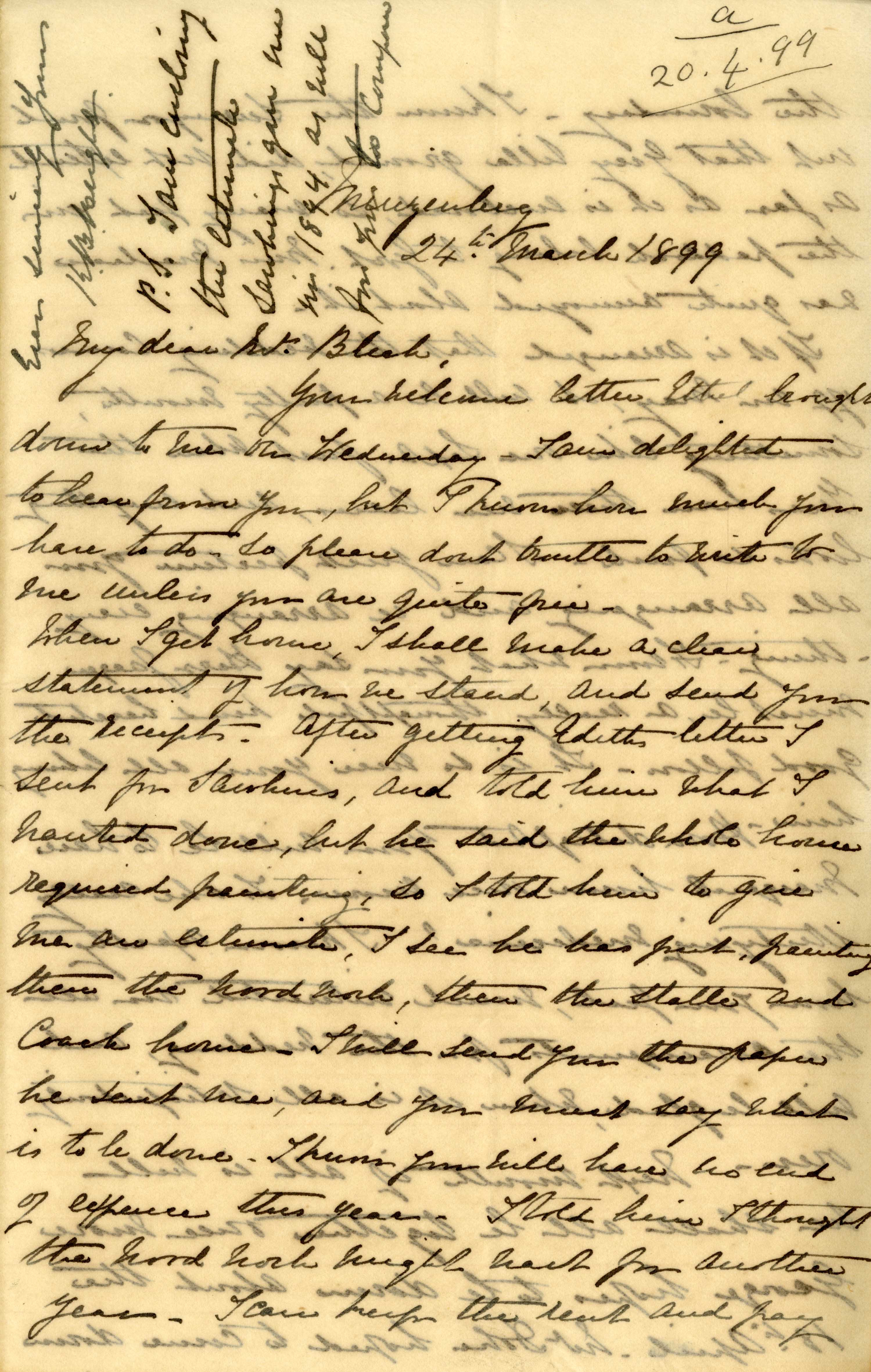 Letter from Katharine Bright to Jemima Bleek, from Mowbray in Cape Town, 24 March 1899.