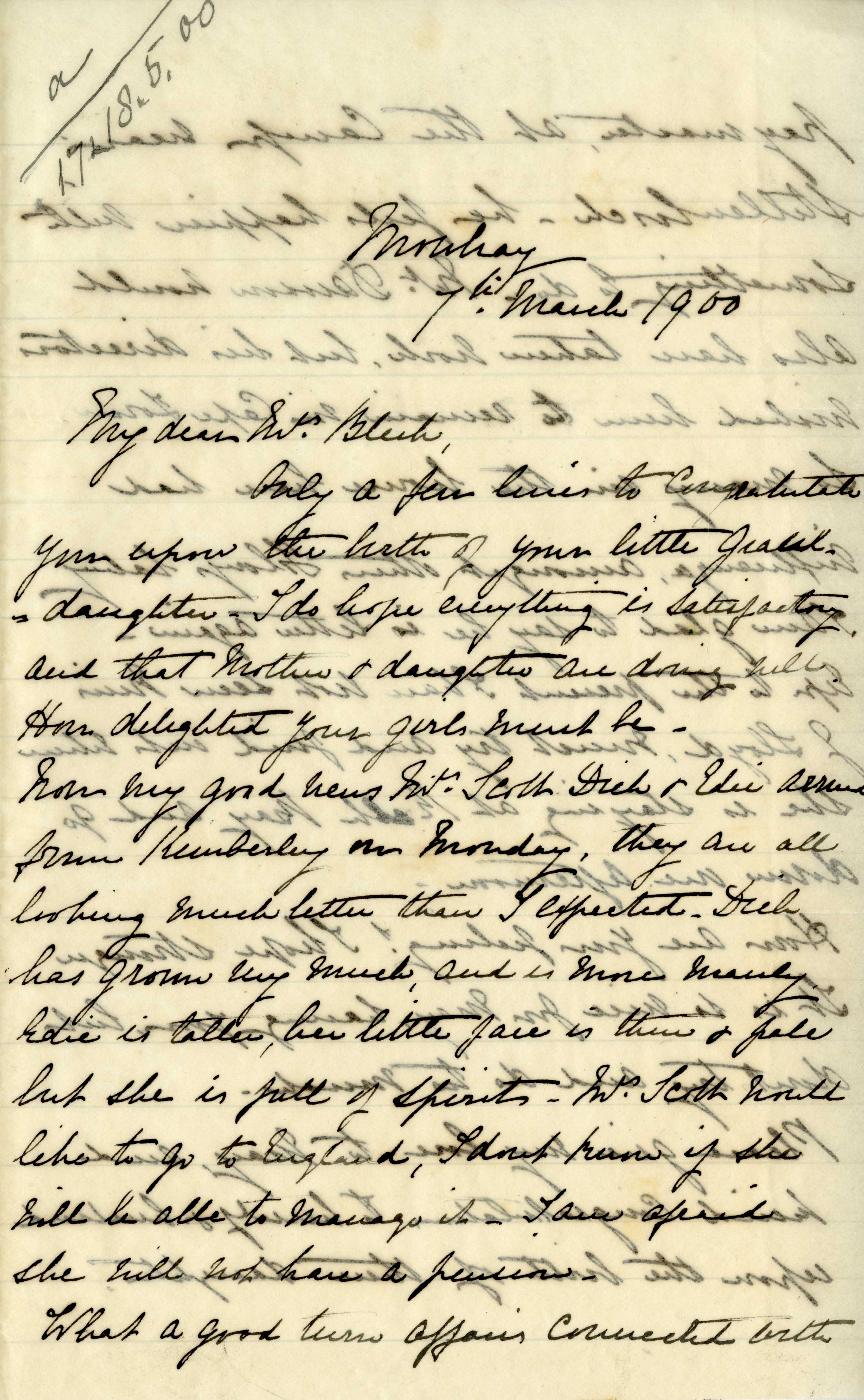 Letter from Katharine Bright to Jemima Bleek, from Mowbray in Cape Town, 7 March 1900.