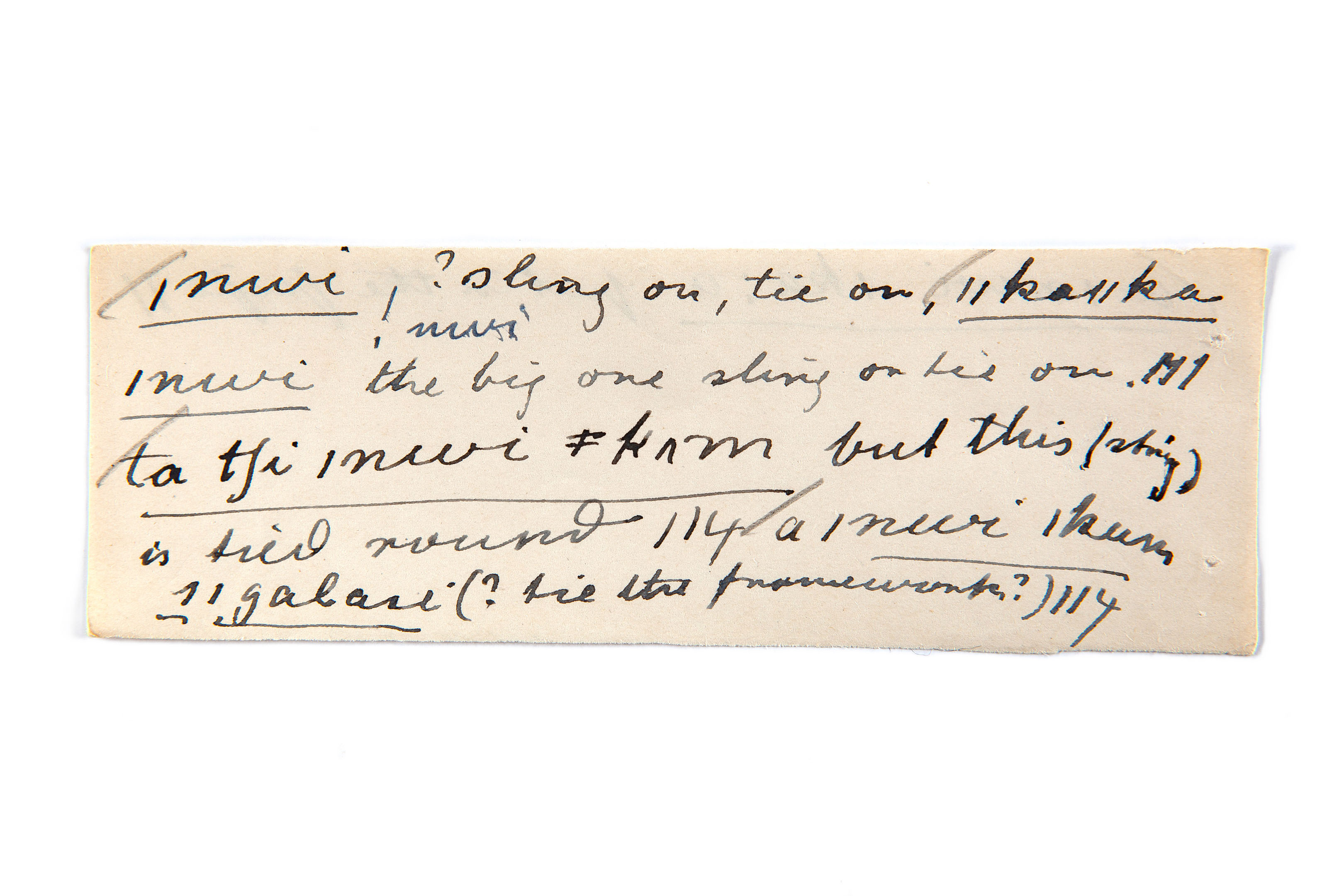 sling on, tie on (the big one), this (string), tied round, tie (the framework)