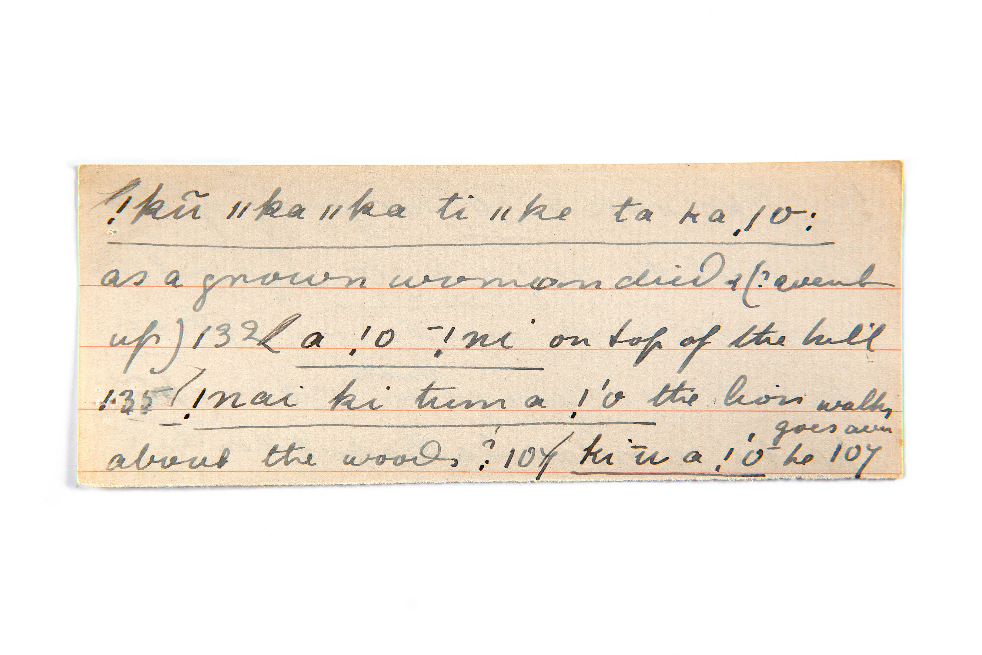 went up (as a grown woman died), on top of the hill, walk about the woods (the lion), go
