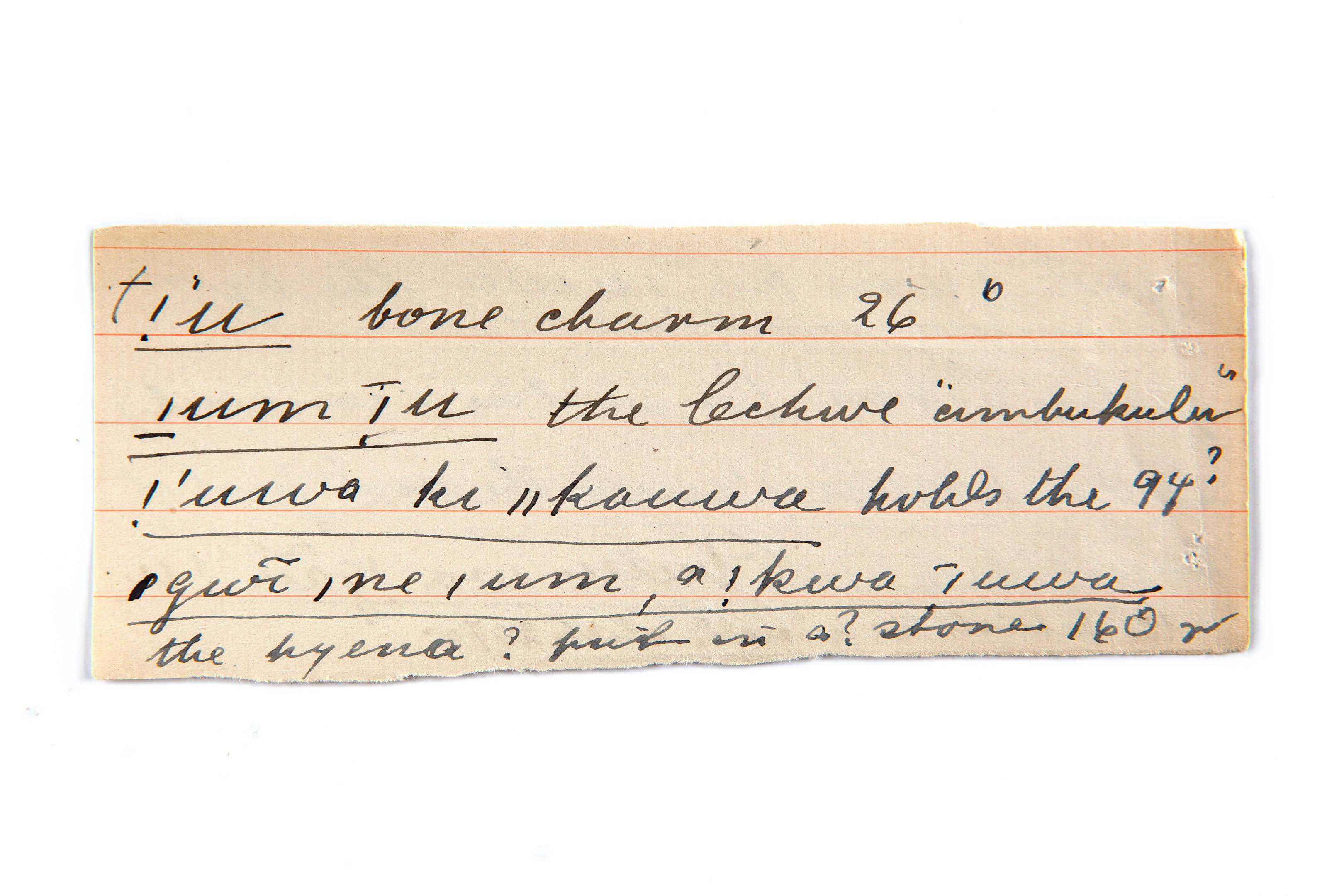 bone charm, umbukulu (the lechwe), holds, hyena (the), put in (a stone)