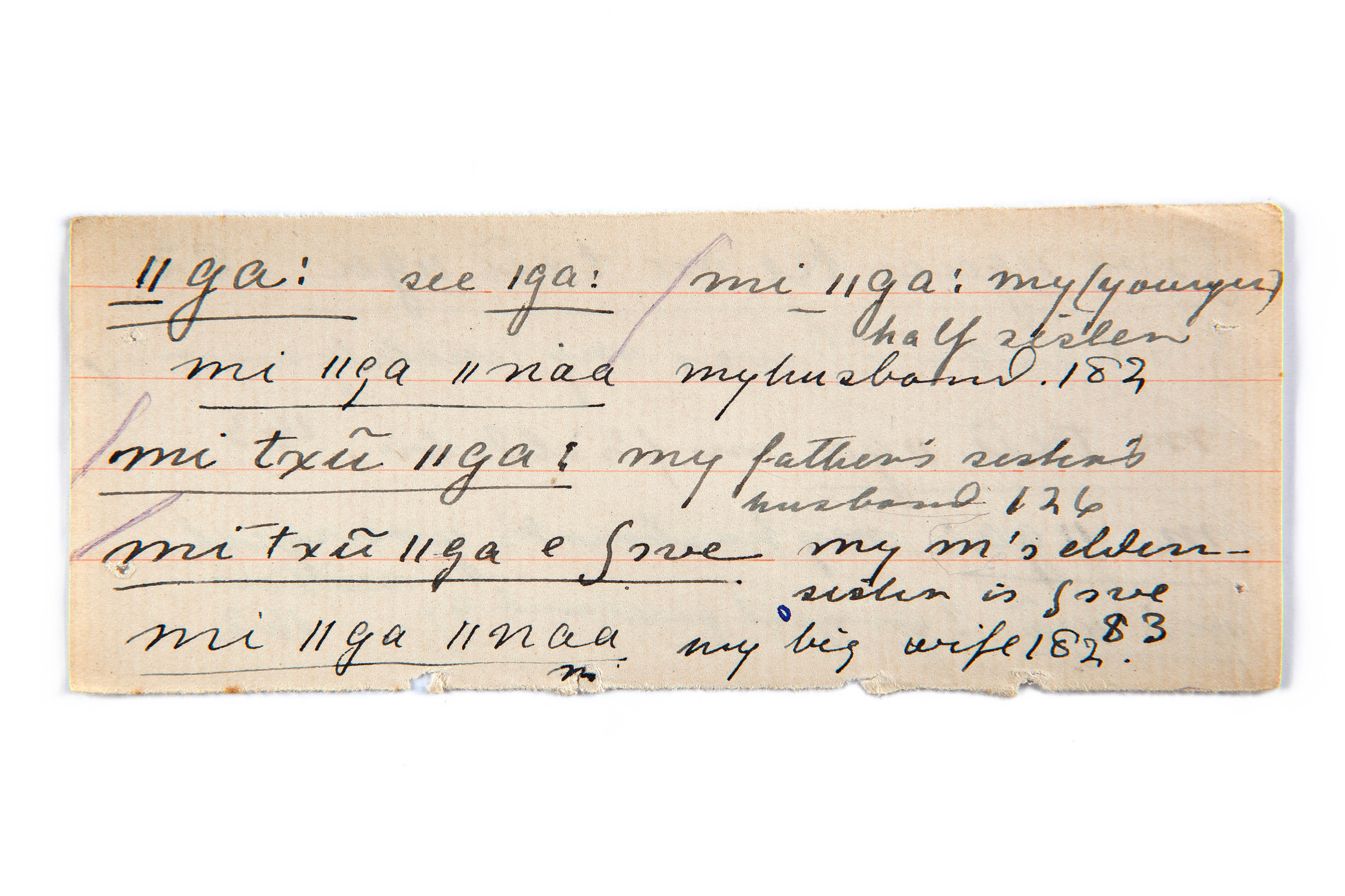 half sister, husband, uncle (father's sister's husband), aunt (mother's elder sister), wife