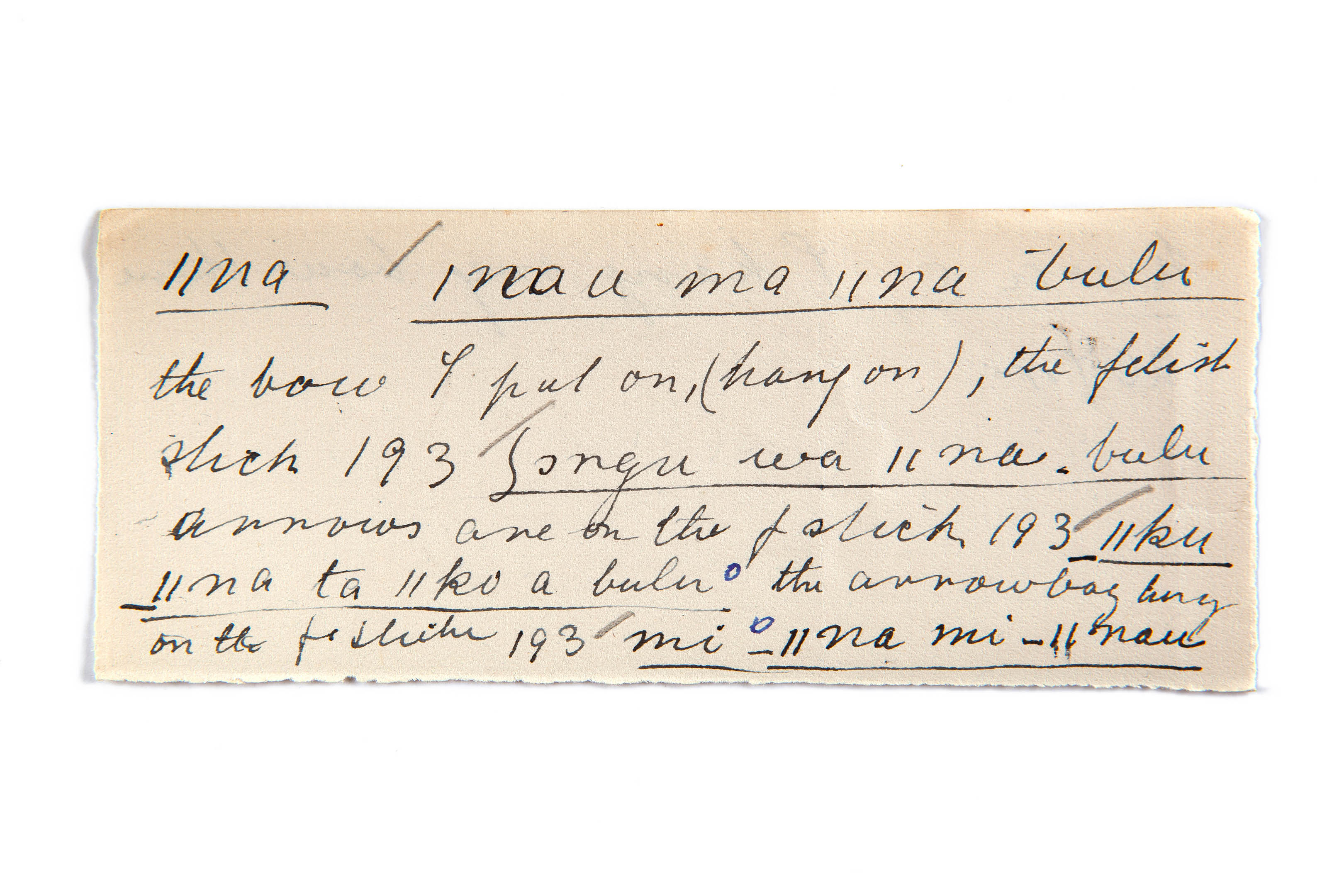 put on, hang on (the bow ), on the fetish stick (the arrows )