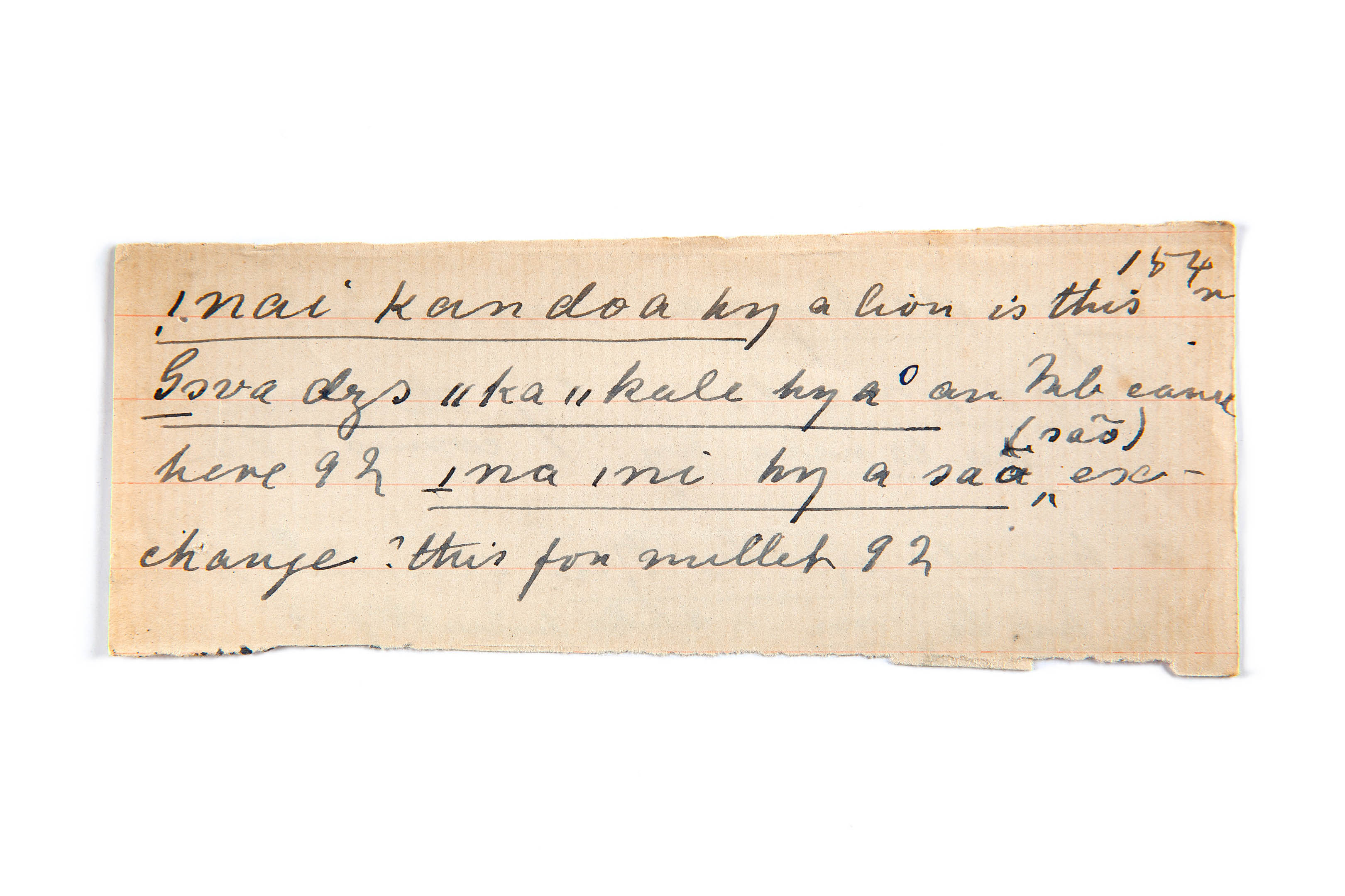 this (a lion is), here (an Mbundu came), exchange this (for millet)