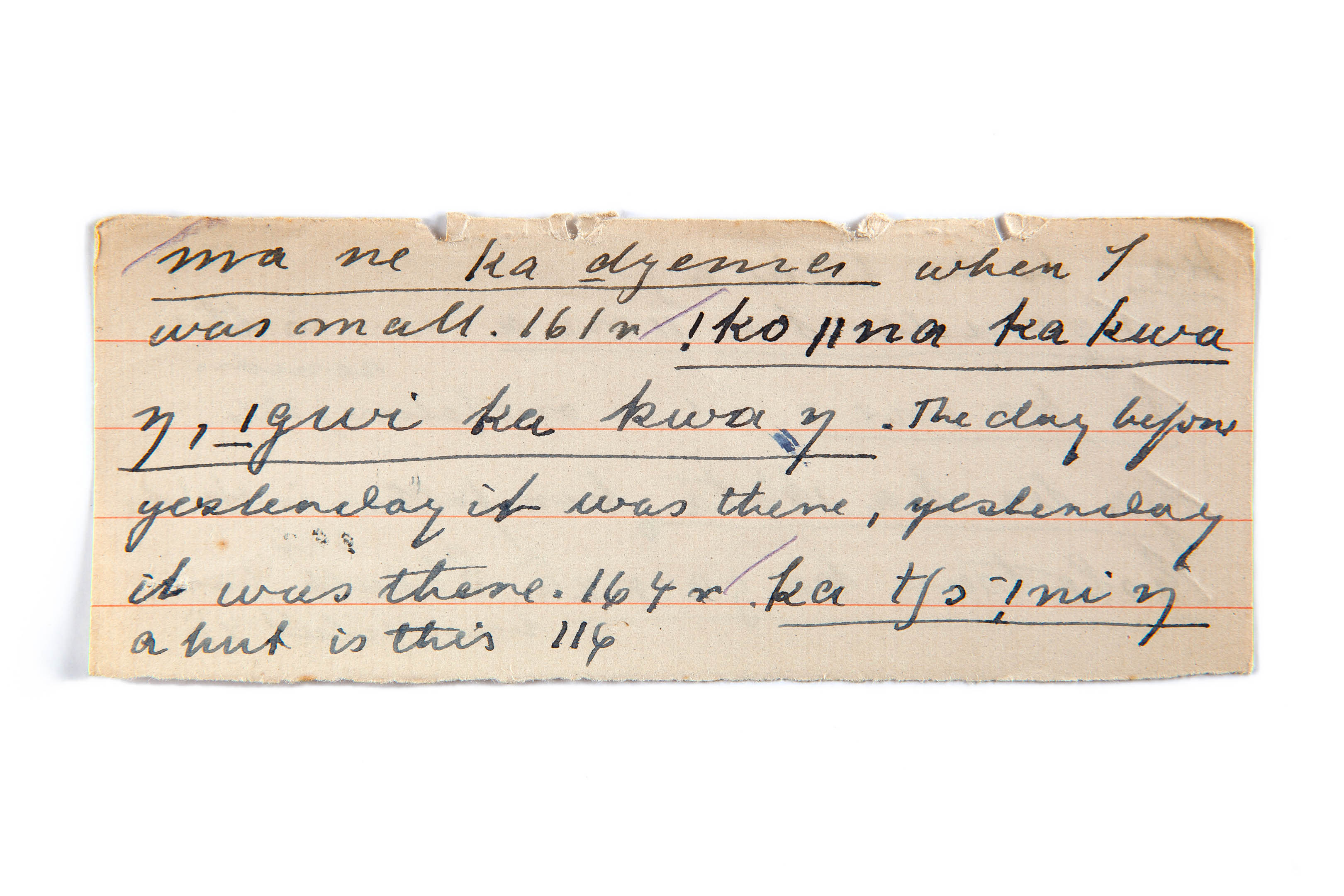 was (when I was small), was there (the day before yesterday), this is (a hut)