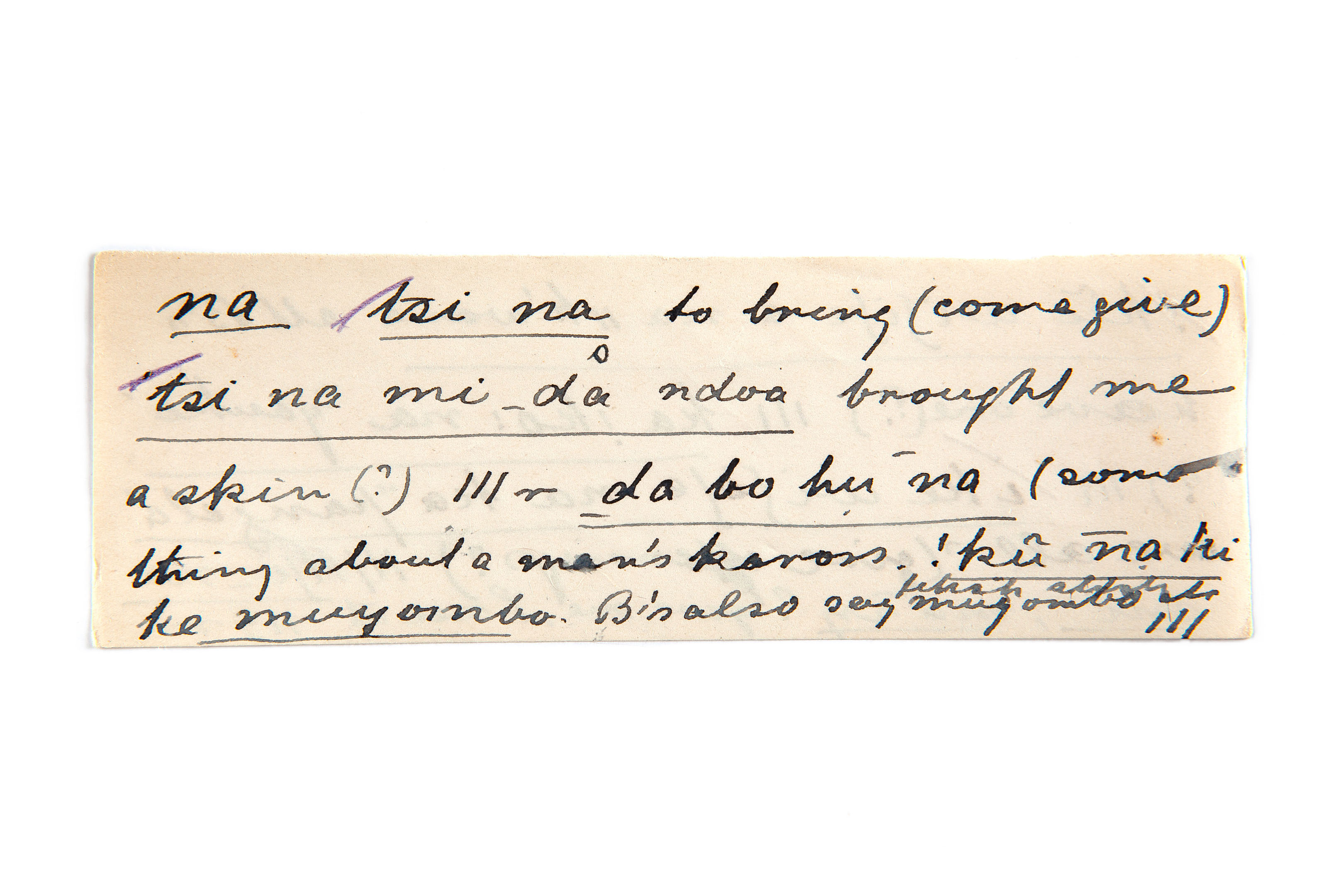 bring, give, man's kaross (something about), also, fetish stick