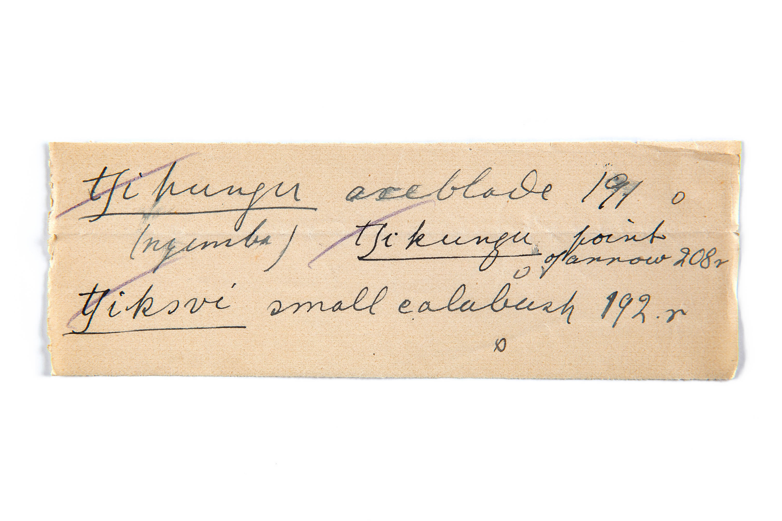 axe blade (njemba), point of arrow, small calabash