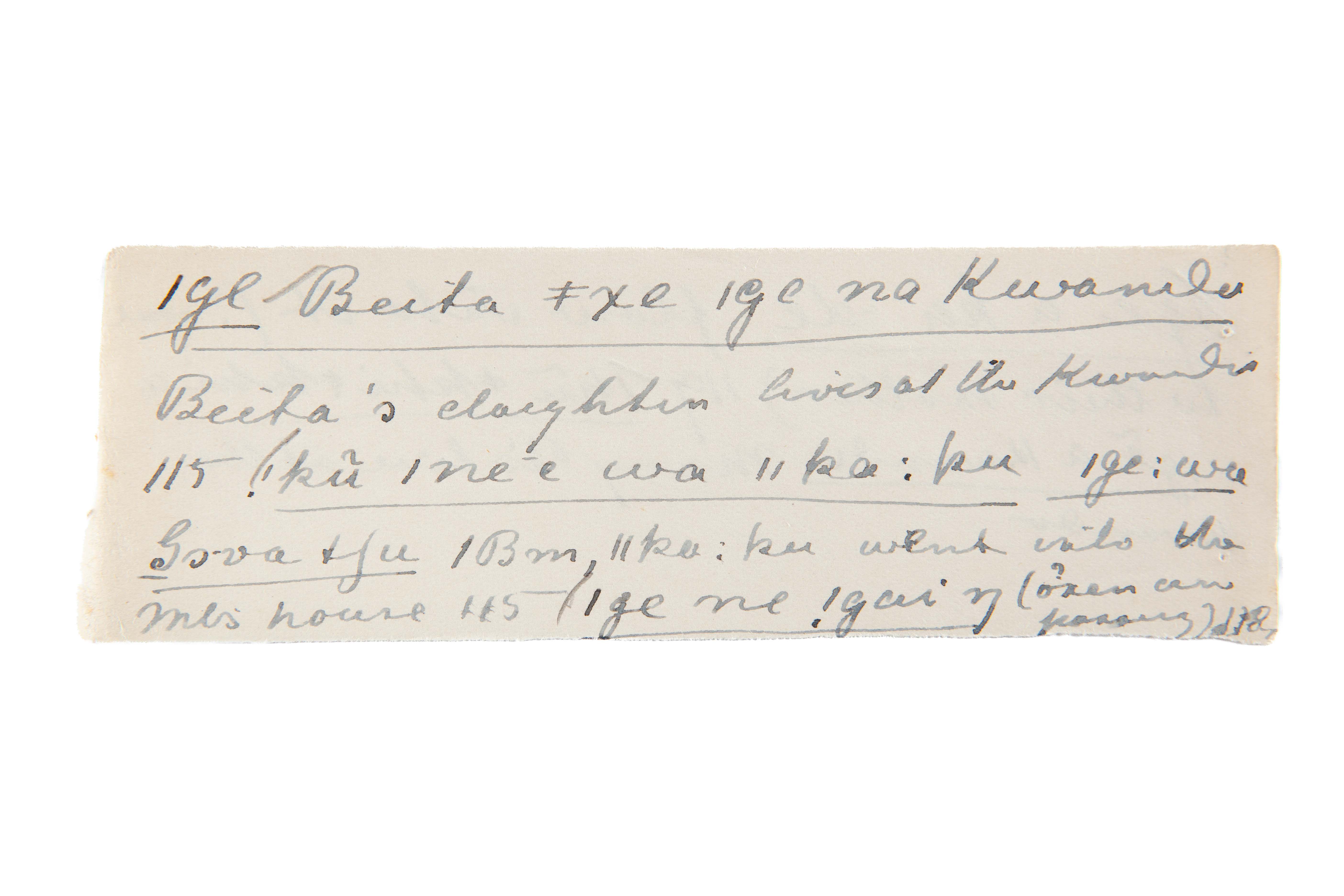 lives at the Kwandu (Beita's daughter), went into (the Mbundu house), oxen, cow
