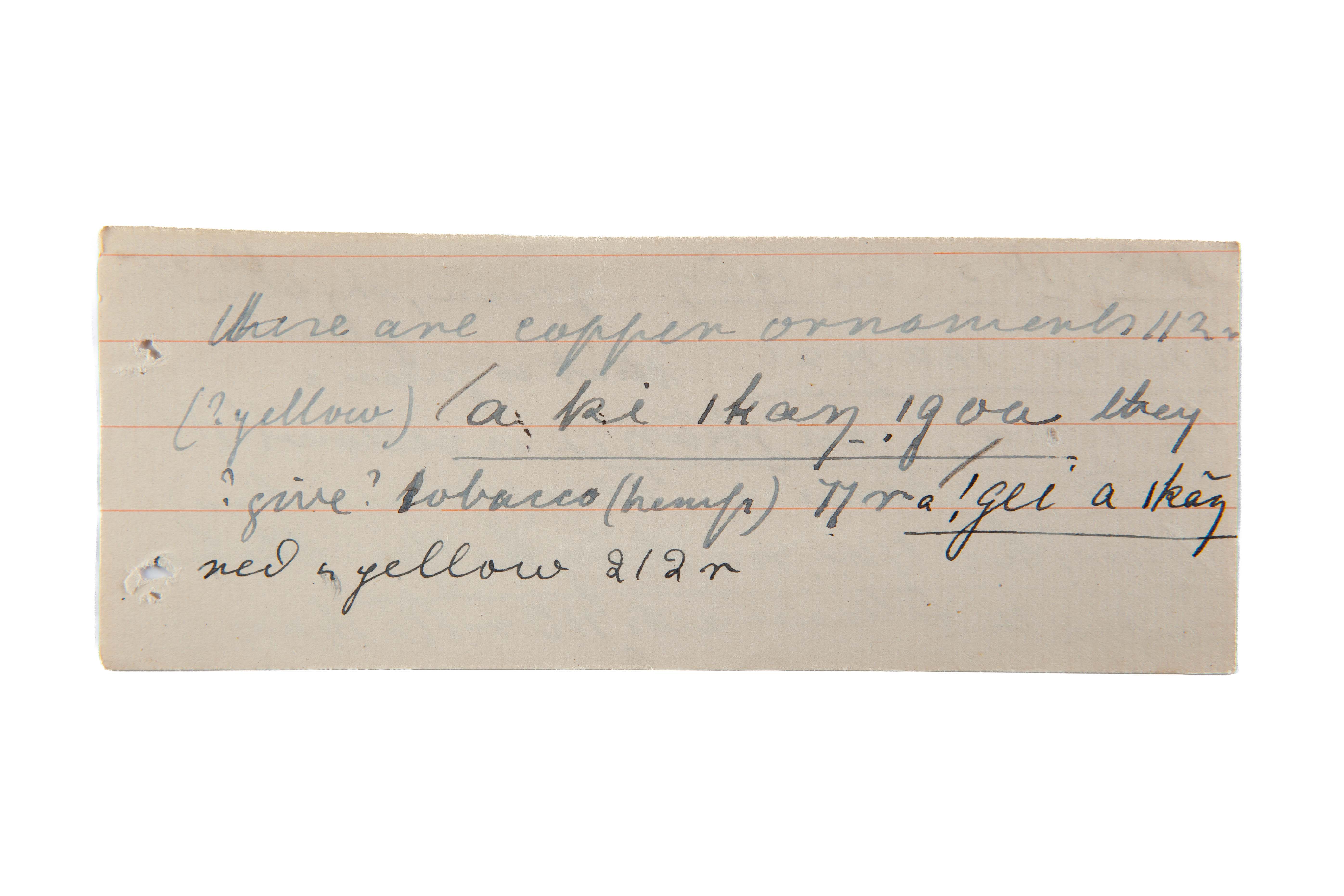 copper ornaments, give, tobacco (hemp), red, yellow