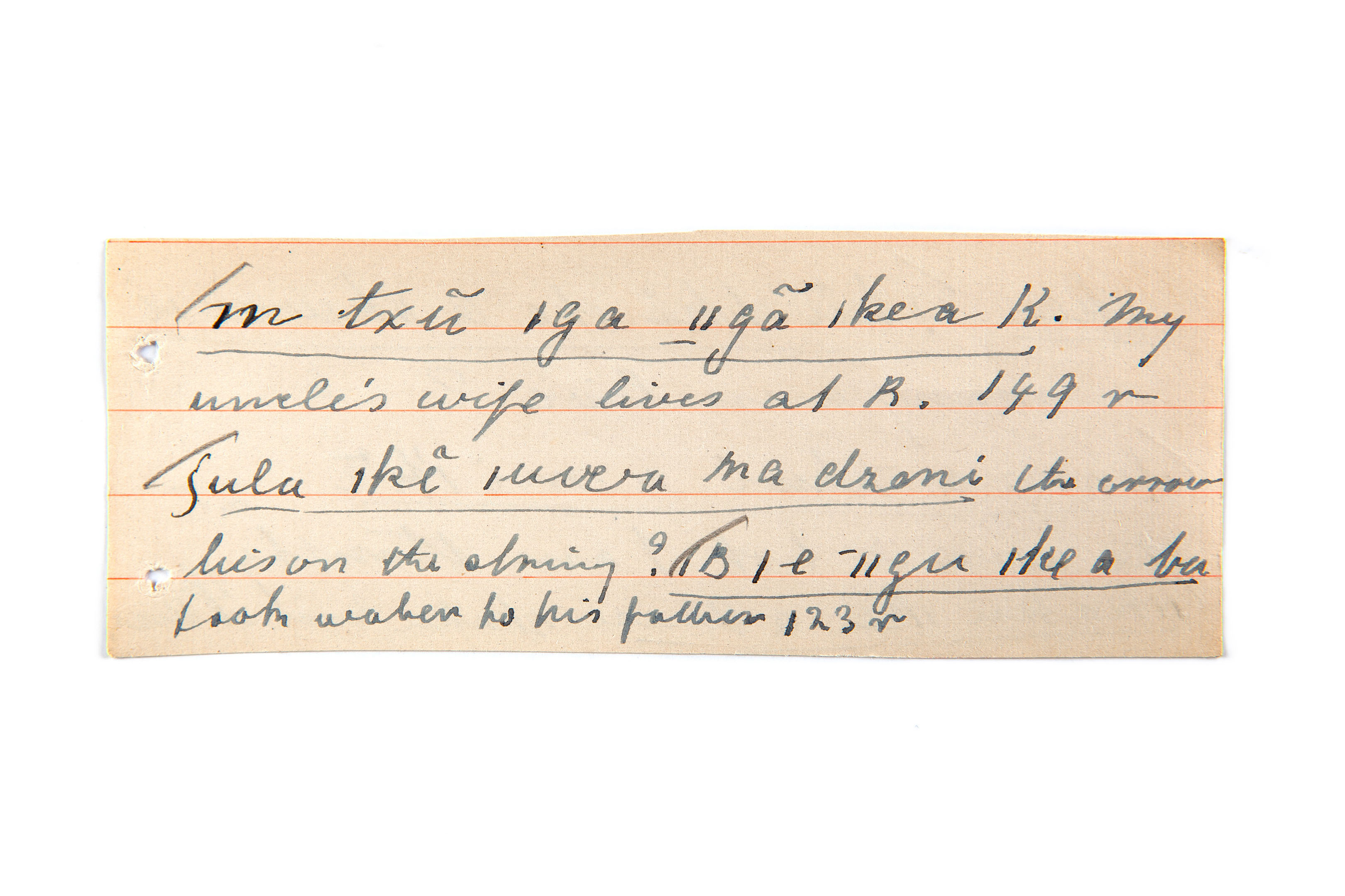 live (my uncle's wife lives at), lie (the arrow lies on the string), took water (to his father)